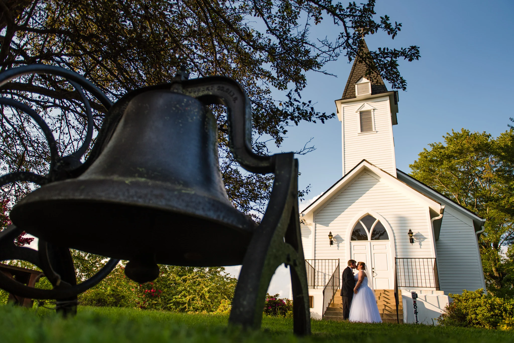 Corinne and Hunter aren’t flashy people, they had a small intimate wedding with their closest family and friends. They beat the heat and got some amazing portraits outside, including a fun shot with an old bell that used to hang in the chapel, as well as unique night portraits after the reception.
