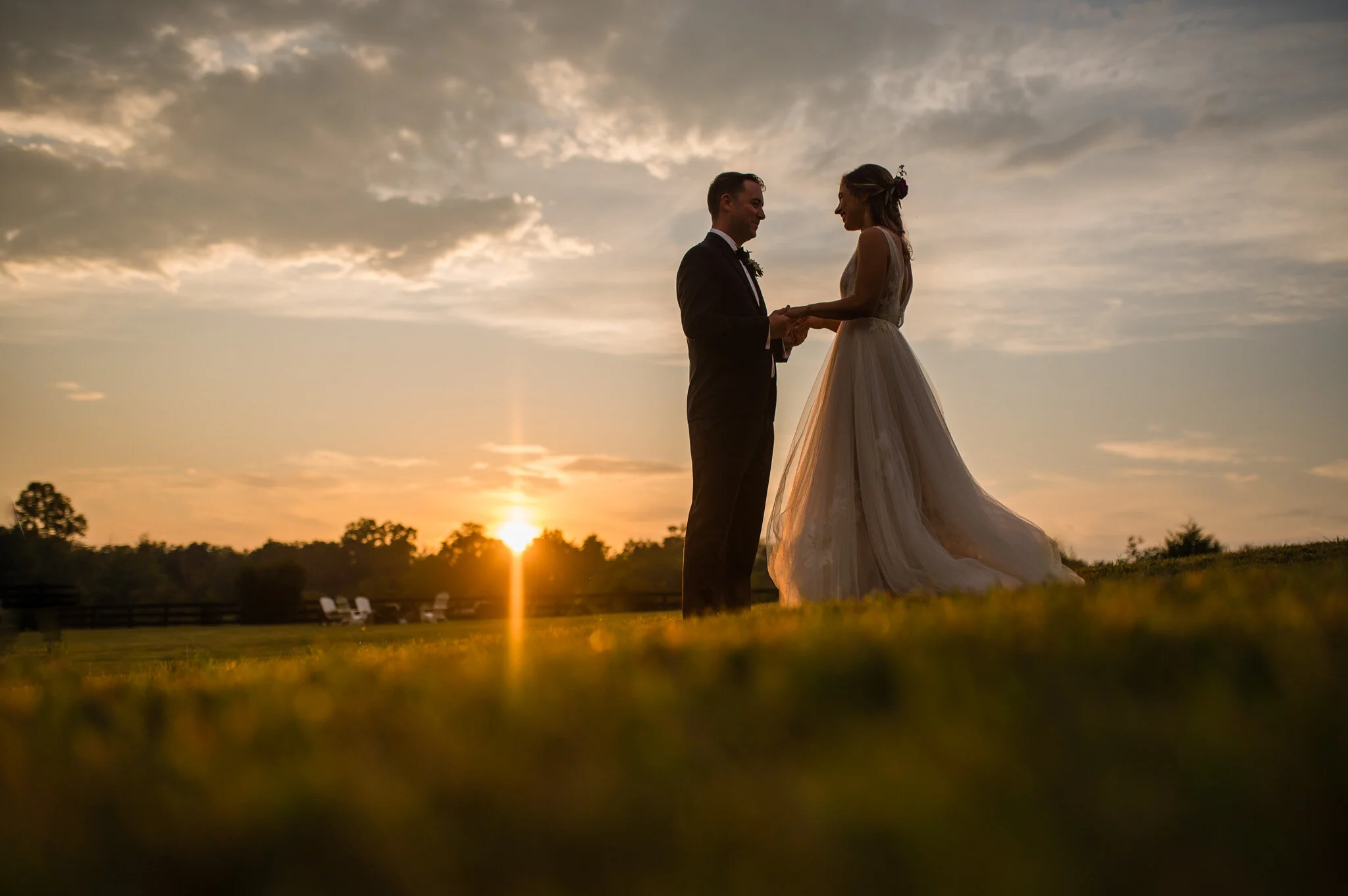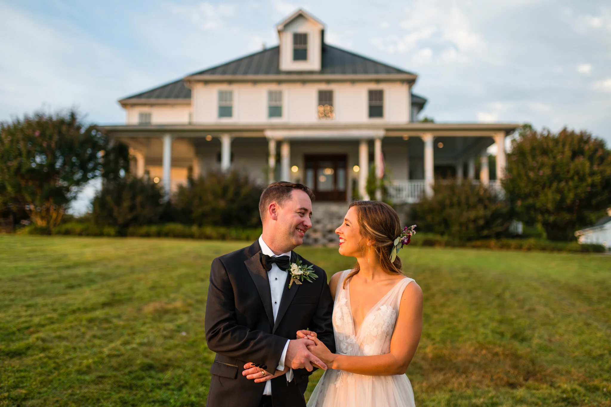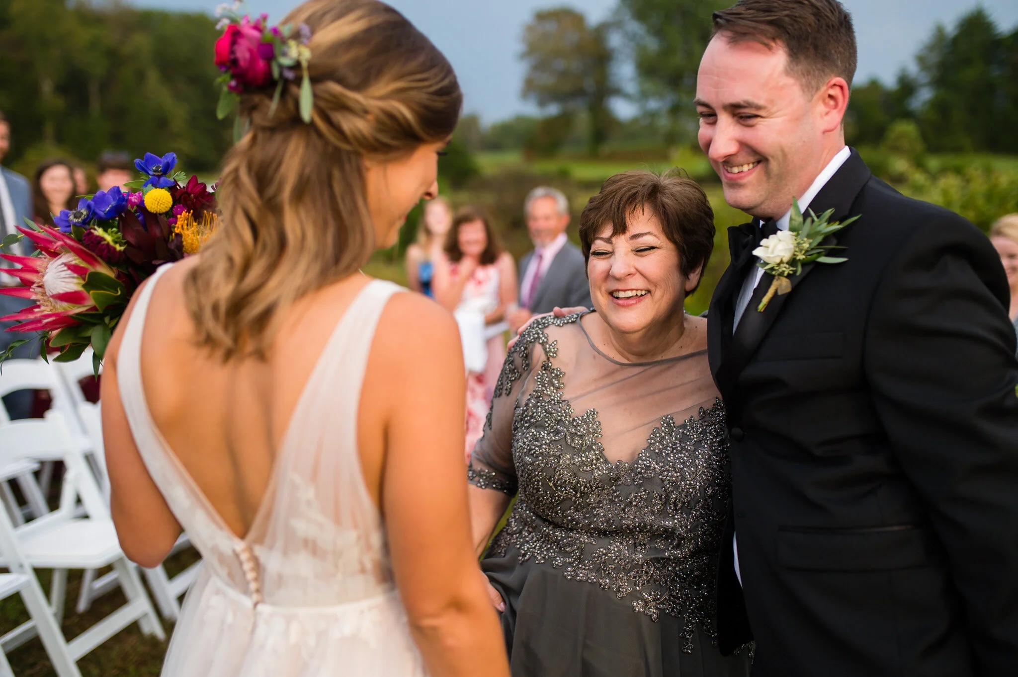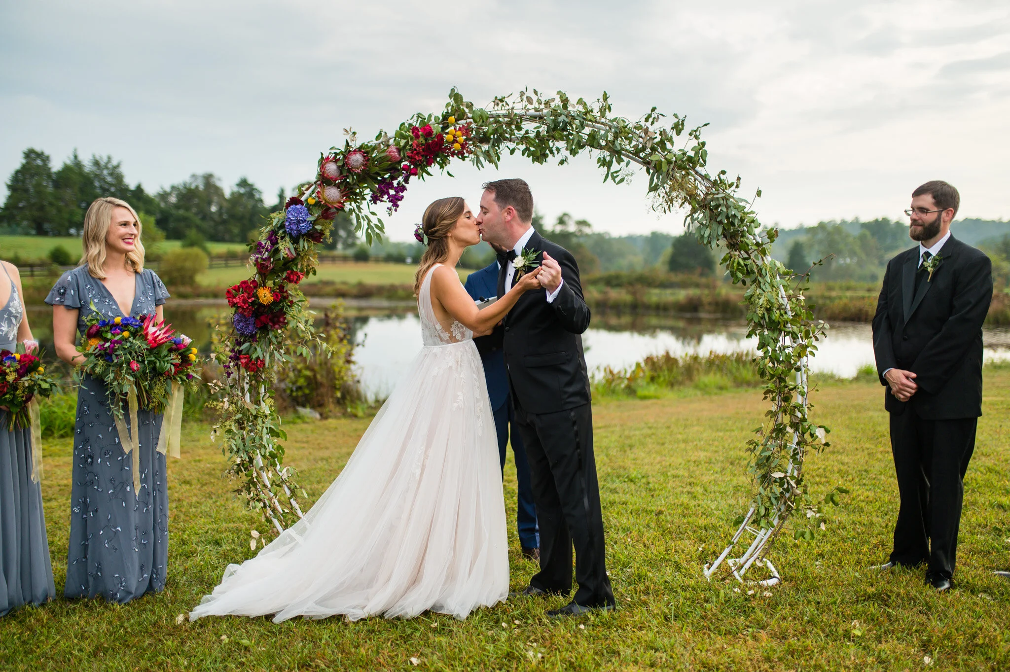 The day wasn’t without it’s challenges, as we did encounter some rain that forced the vendor team to be quick and nimble setting everything up. But all in all we were still able to enjoy a beautiful outdoor ceremony and soft warm light for our photos that evening. My favorite moment of the day had to be their first look and personal vows to each other. Be sure to scroll down to see their reactions to each other!