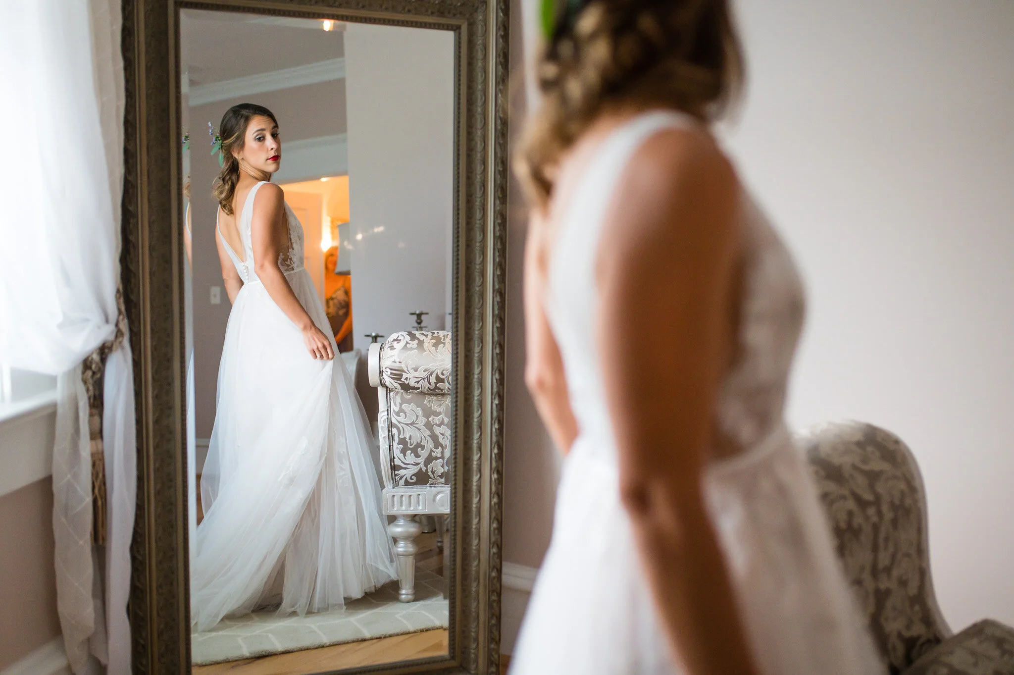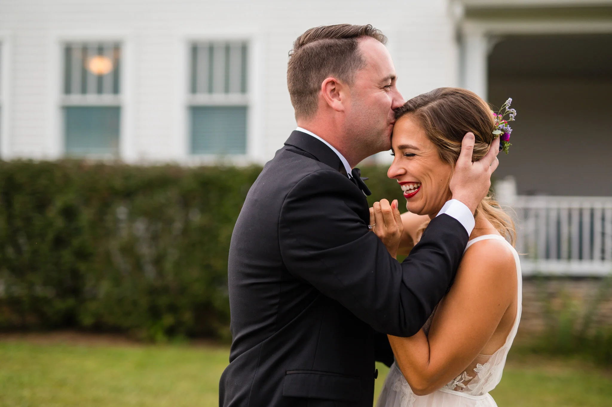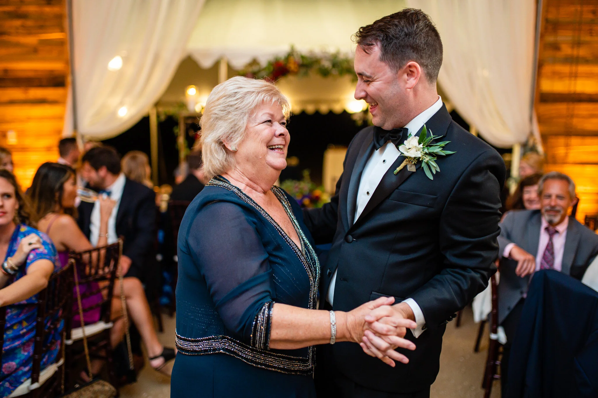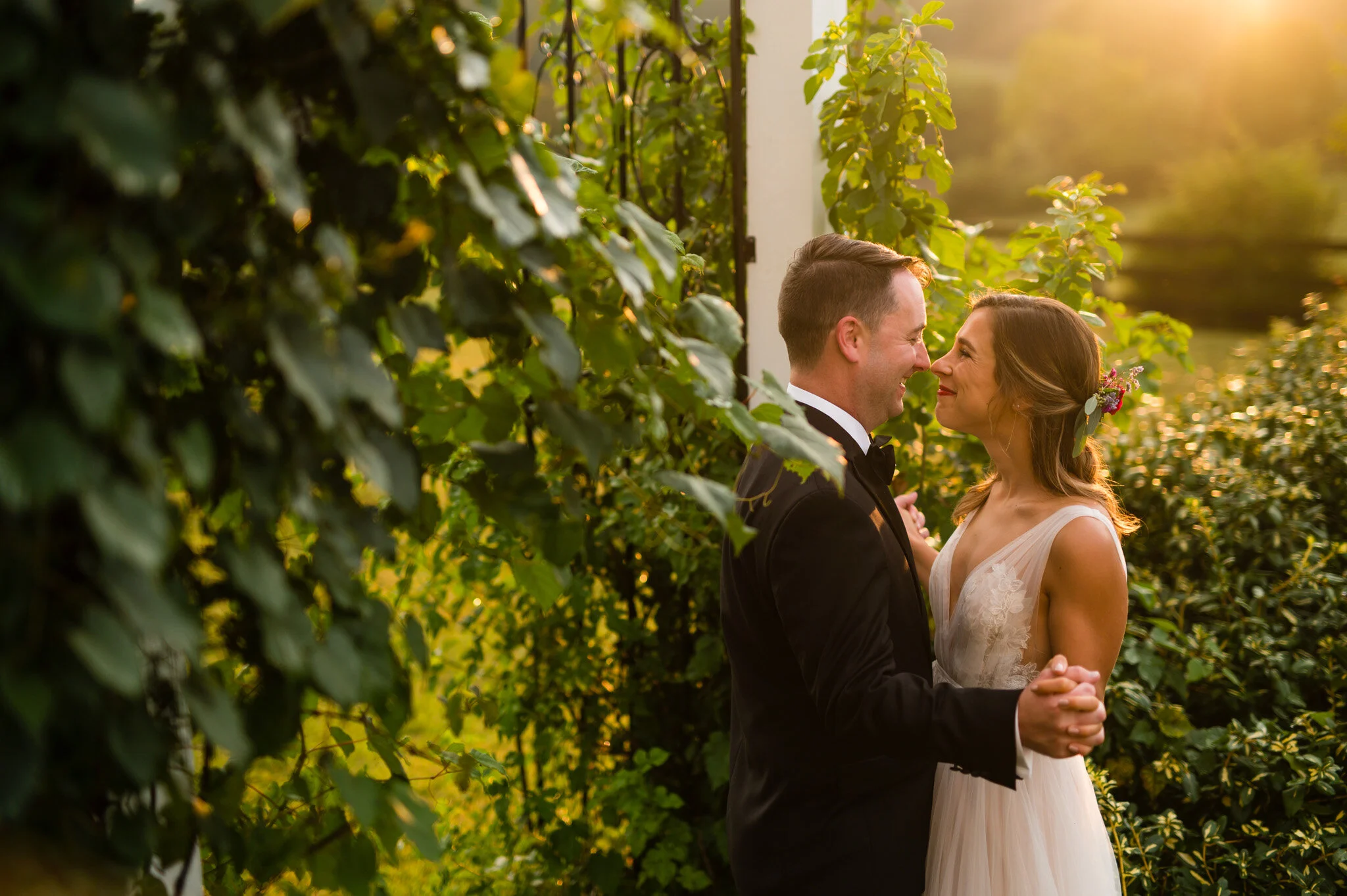 The day wasn’t without it’s challenges, as we did encounter some rain that forced the vendor team to be quick and nimble setting everything up. But all in all we were still able to enjoy a beautiful outdoor ceremony and soft warm light for our photos that evening. My favorite moment of the day had to be their first look and personal vows to each other. Be sure to scroll down to see their reactions to each other!