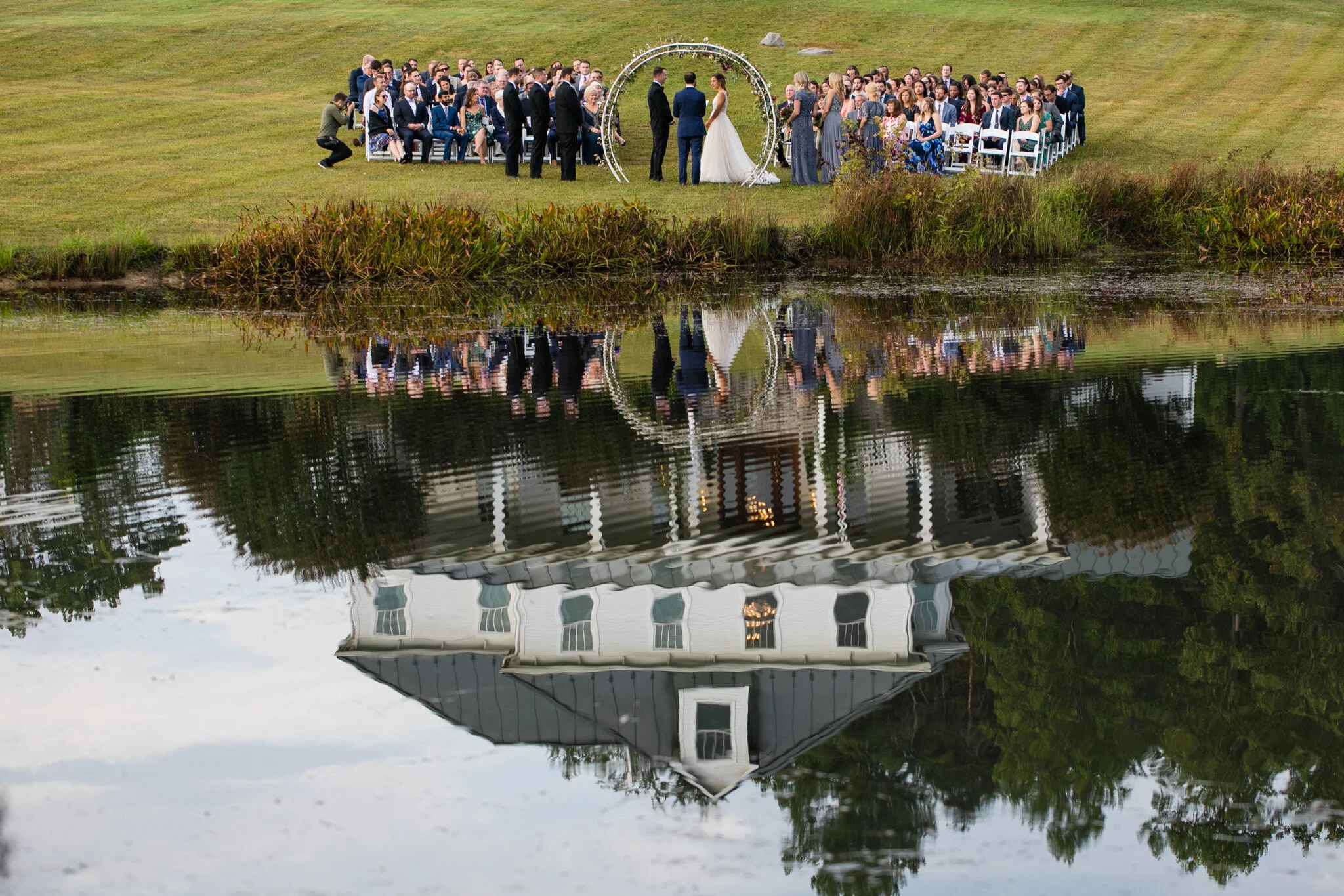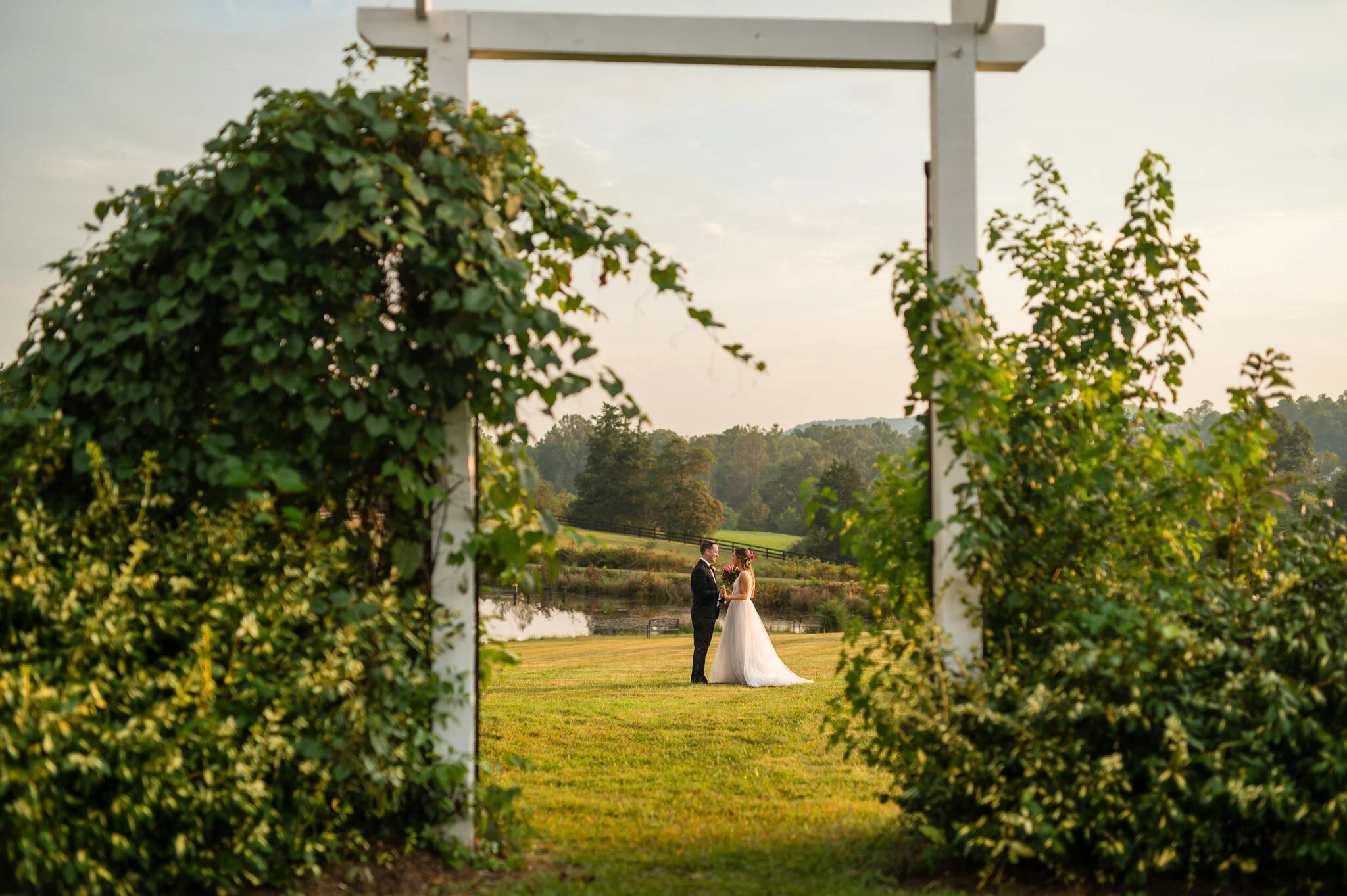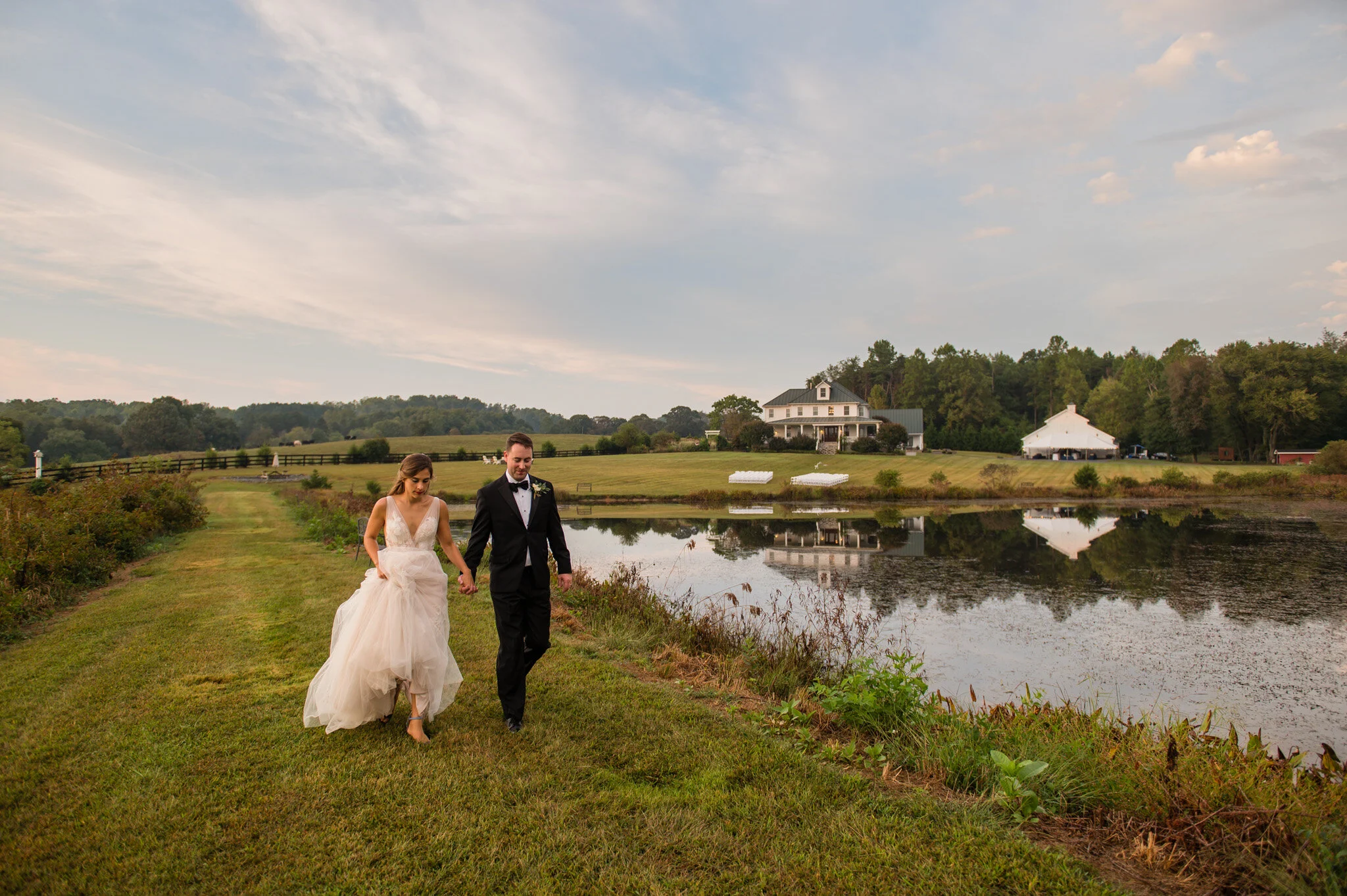 Driving out to Walden Hall for Brendan and Ashley’s wedding was the first of many refreshing moments that day. Walden Hall feels like a sanctuary at the foot of the Shenandoah mountains and is more than an hour from any big city. It sits on a hill overlooking a lake and lush green hills that roll together to form the perfect serene spot for a wedding. Even though I was “working,” it felt like hanging out with friends and being able to detox from daily stresses.