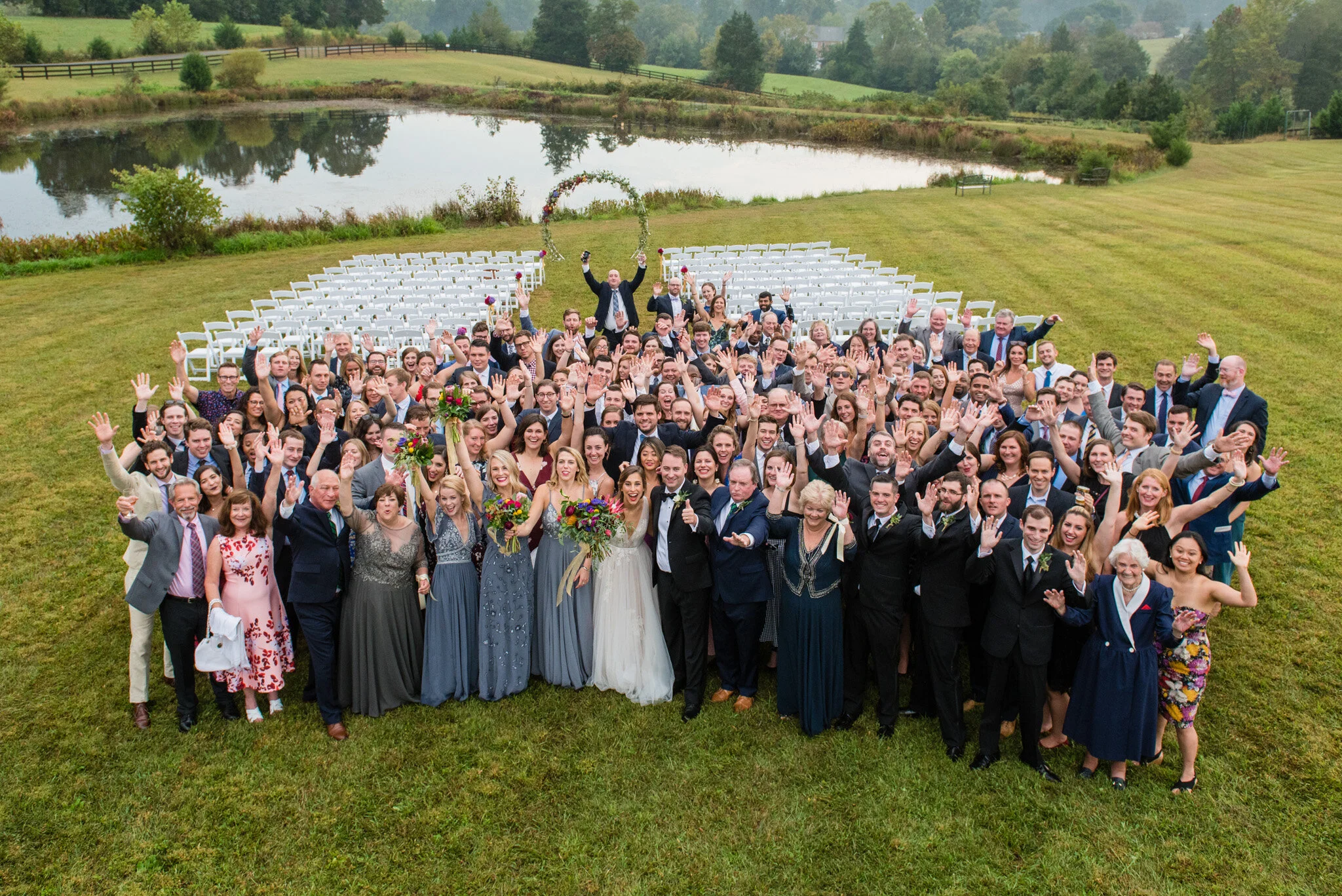 Choosing Walden Hall was one of their easy wedding decisions. Brendan and Ashley loved the natural scenery, the venue game room, pool, and the fact that they could share it with their bridal party for the whole weekend. Above all, the people in their lives are most important, which meant we had to capture one photo with everyone together!