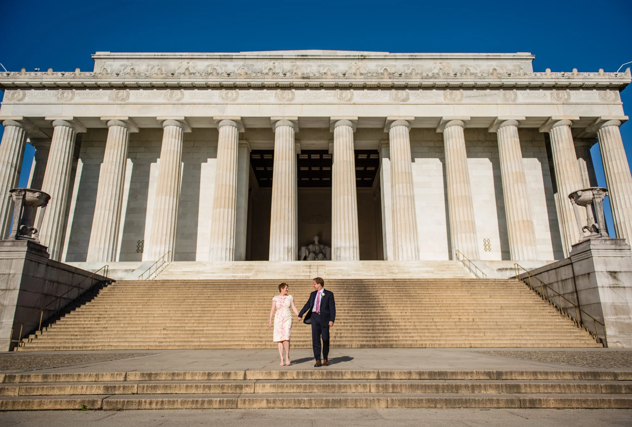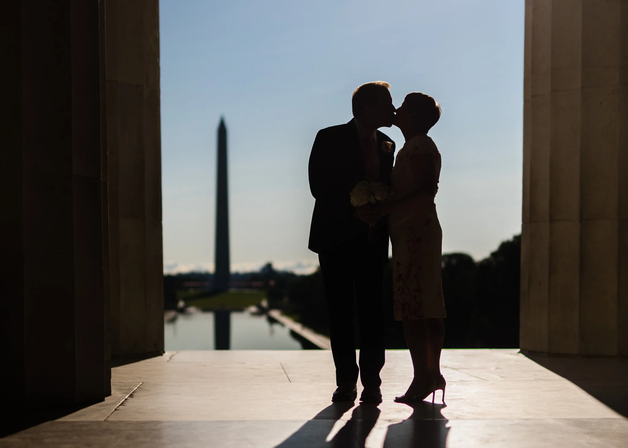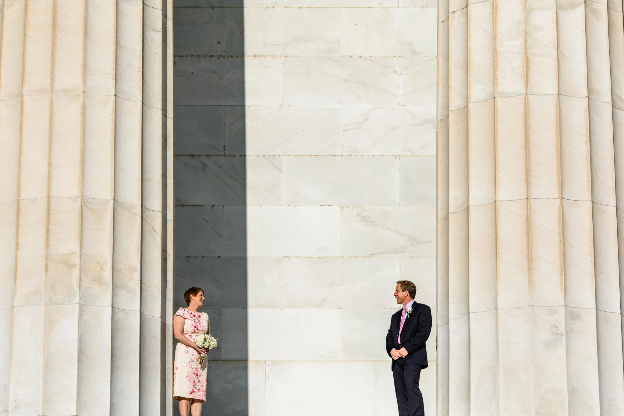 Their wedding was held under the DC War Memorial south of the reflecting pool between the Lincoln and the WWII memorials. We left their apartment early in order to capture portraits around the Mall, and fortunately, we arrived before large crowds had formed and while there was still great morning light. It was here that I truly began to see the wonderful details of Ray and Leah’s relationship, from the way Leah smiled at Ray, to the way they randomly danced together during the portraits, this is a beautiful relationship.