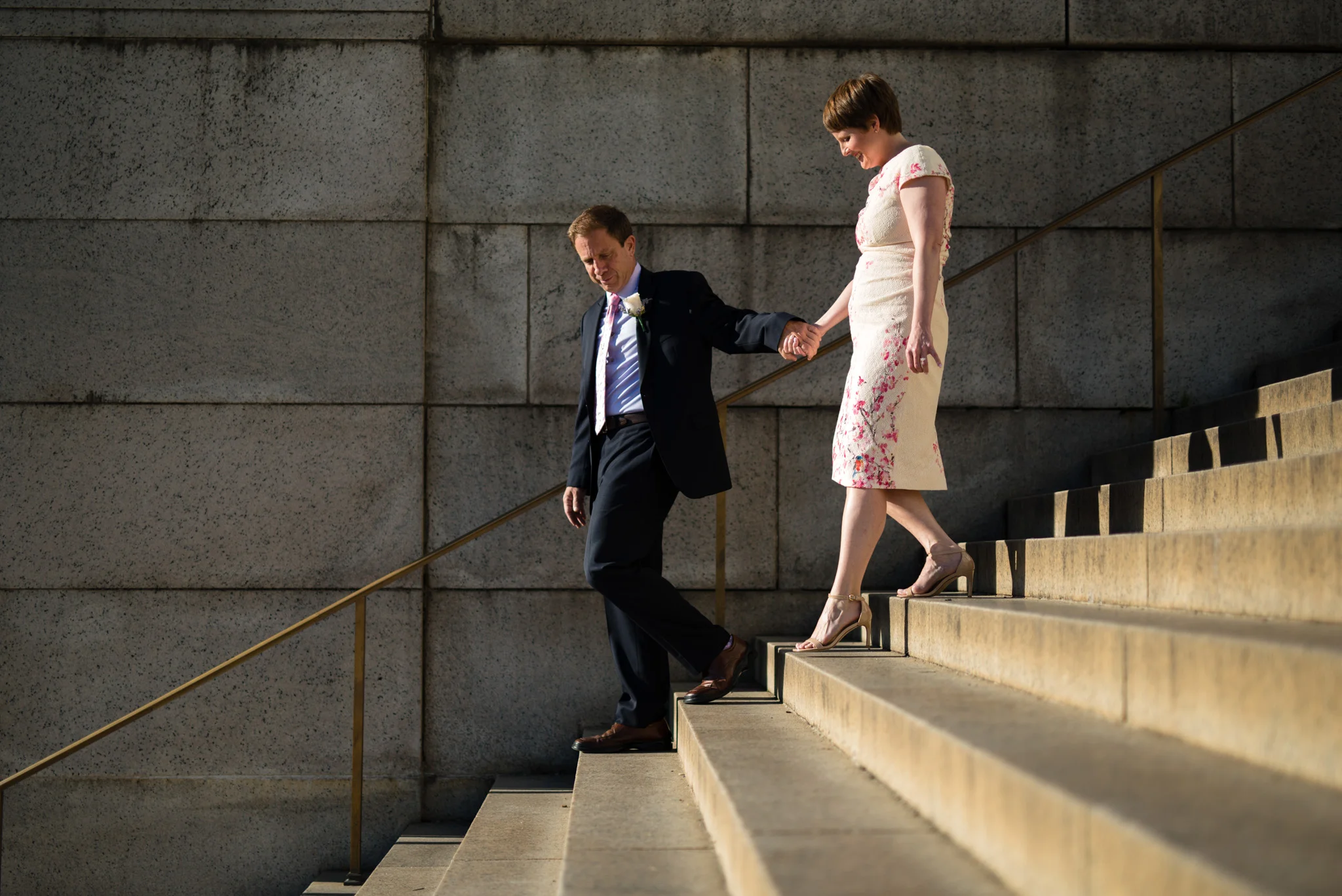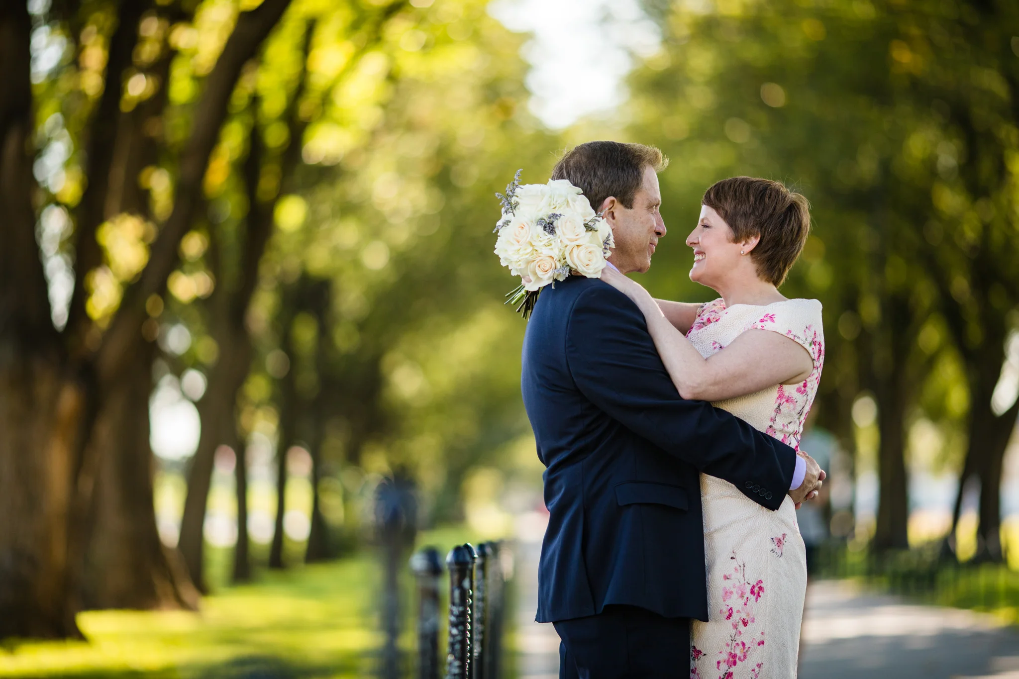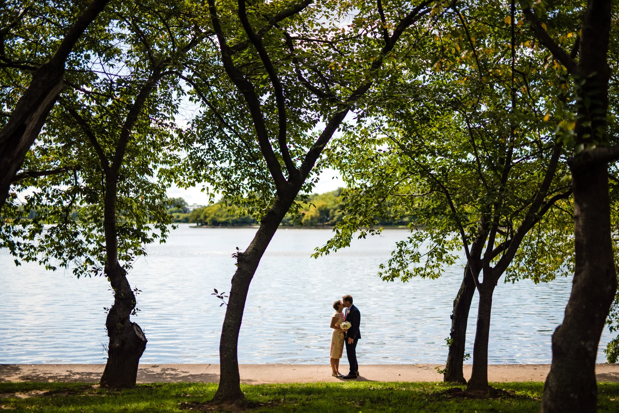 Their wedding was held under the DC War Memorial south of the reflecting pool between the Lincoln and the WWII memorials. We left their apartment early in order to capture portraits around the Mall, and fortunately, we arrived before large crowds had formed and while there was still great morning light. It was here that I truly began to see the wonderful details of Ray and Leah’s relationship, from the way Leah smiled at Ray, to the way they randomly danced together during the portraits, this is a beautiful relationship.