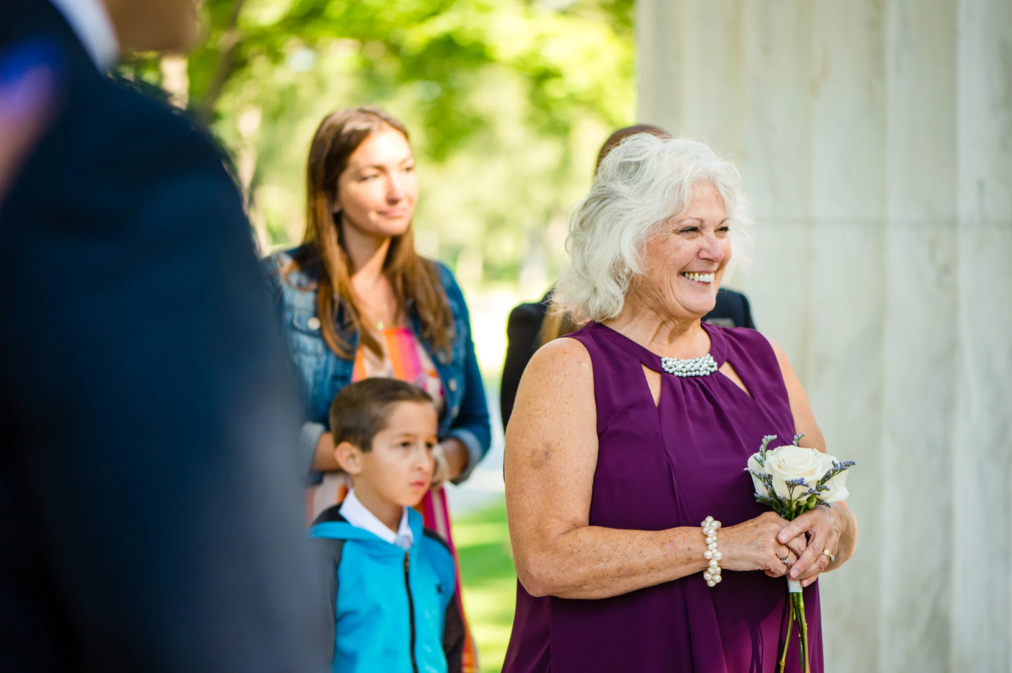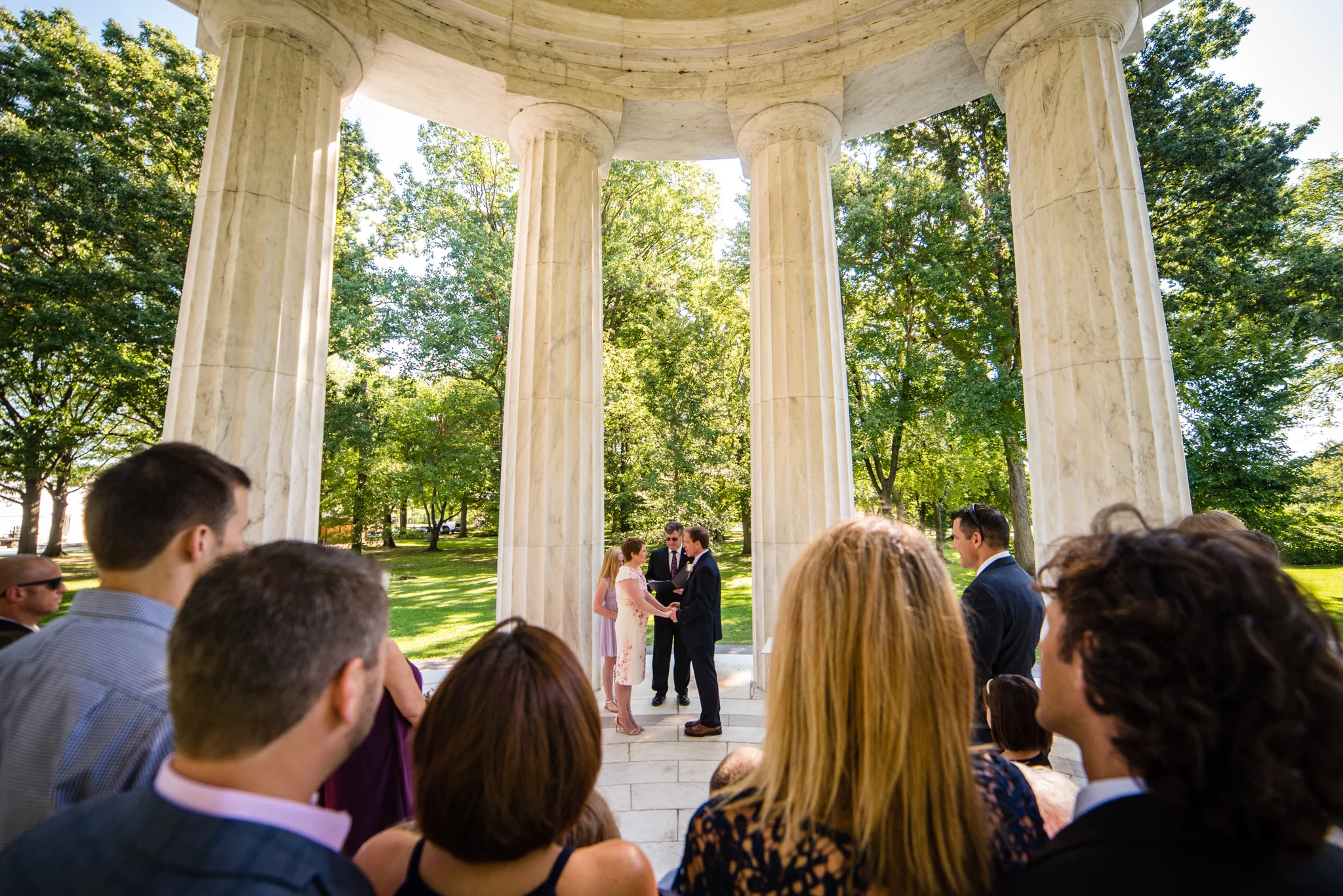 Wedding at the DC War Memorial along the Washington DC Mall.