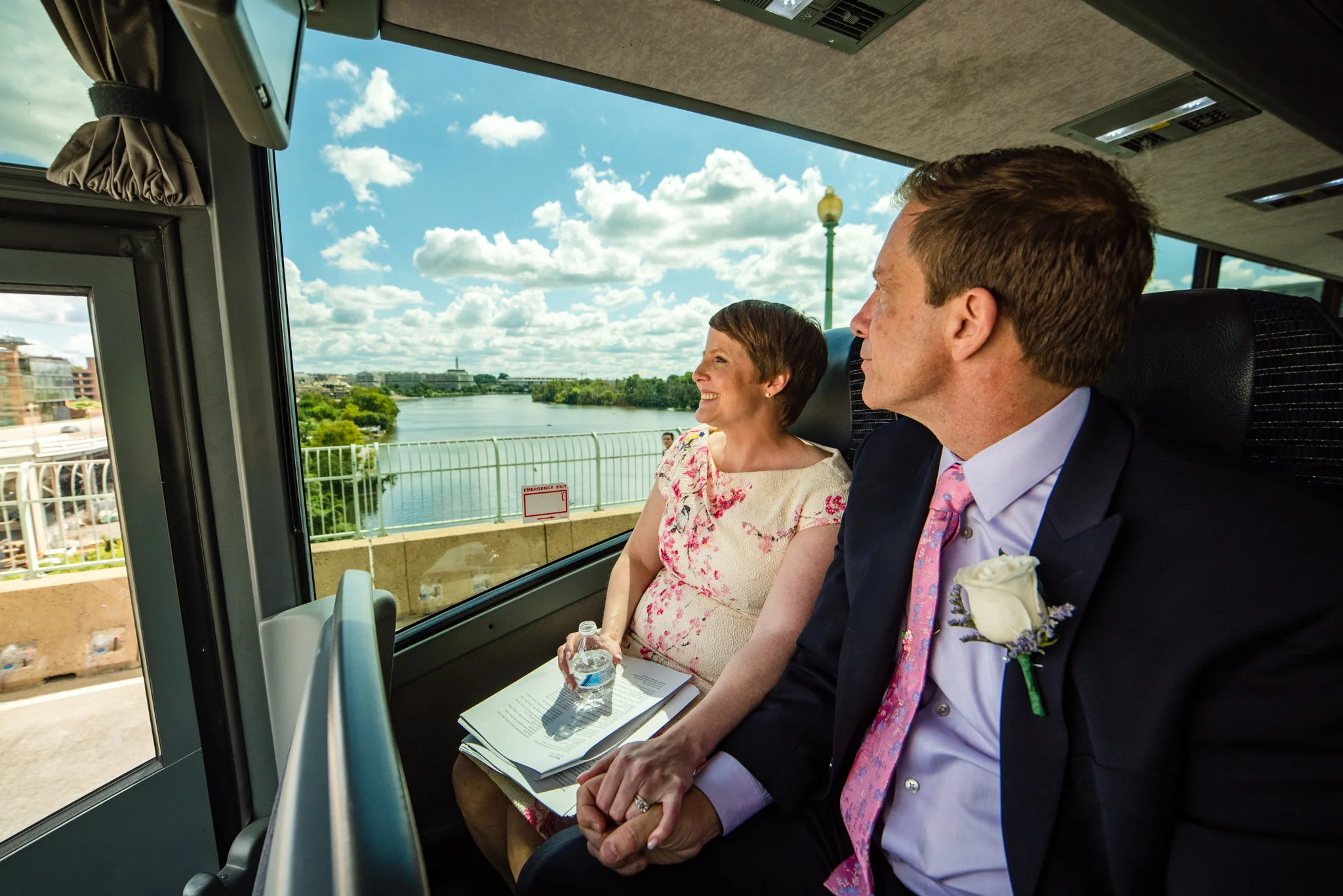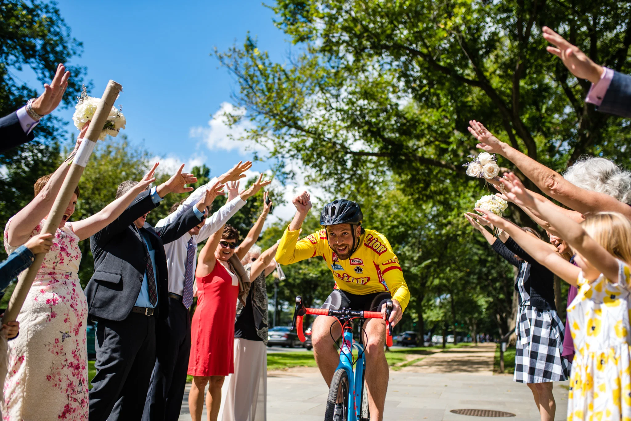 After the ceremony and a time of portraits around the Tidal Basin, everyone stood ready to ride the bus back to Bethesda. While we waited, a few of Leah and Ray’s family brought everyone together into two lines to cheer on passing bikers as they rode by on the sidewalk. In addition to that, the bus ride back was nothing but a sing along the whole way. This was a fun family to get to know!
