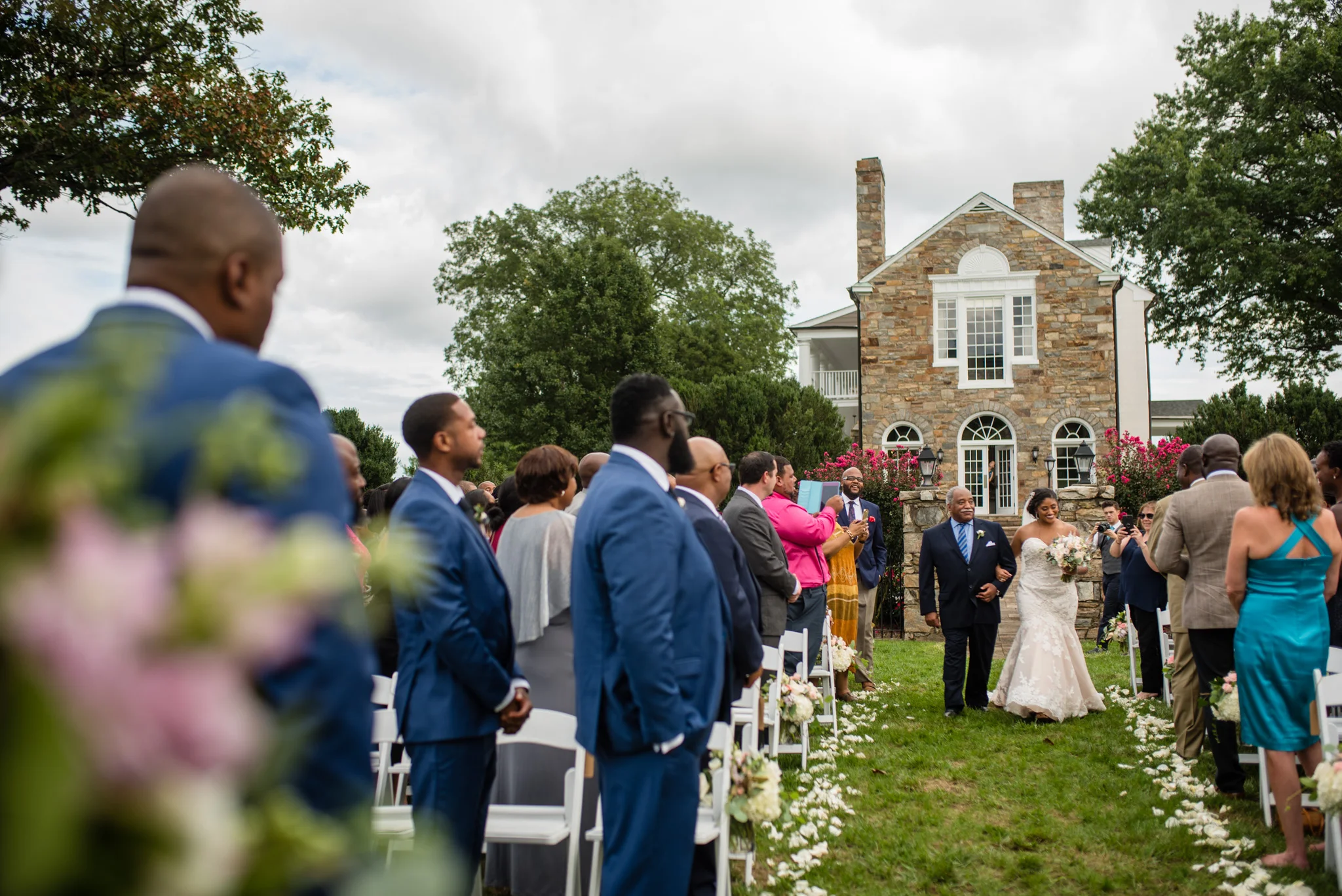 Evergreen Country Club is a lush venue that sits at the foot of the Bull Run Mountains. The intense, late-summer greens and beautiful manor house gave me a wide variety of areas to be creative in on Rob and Angela’s wedding day!