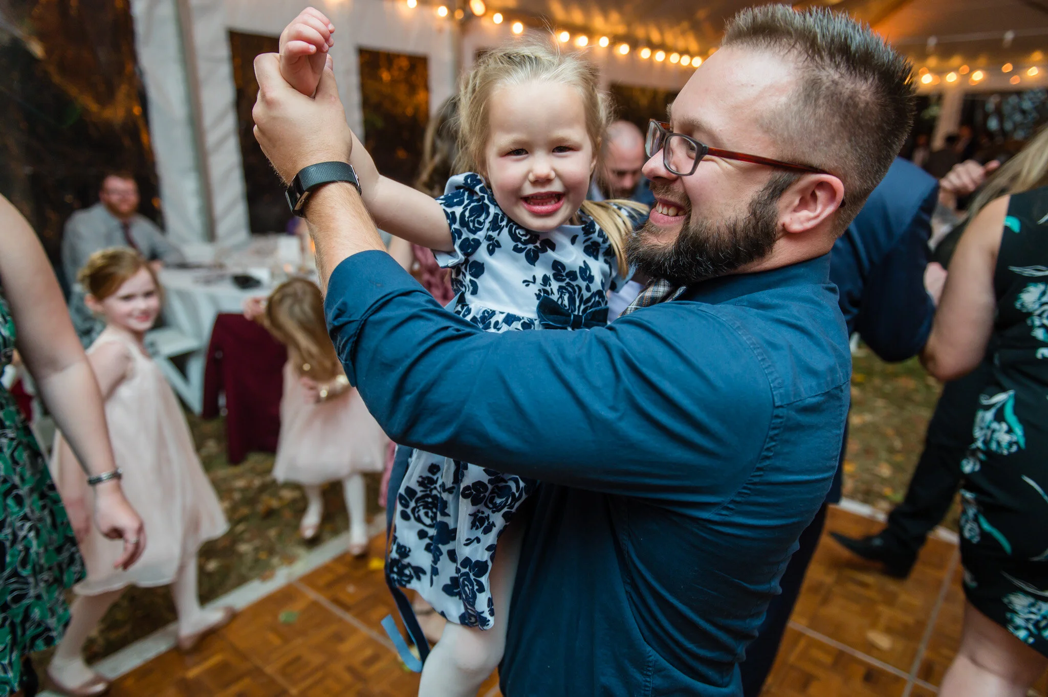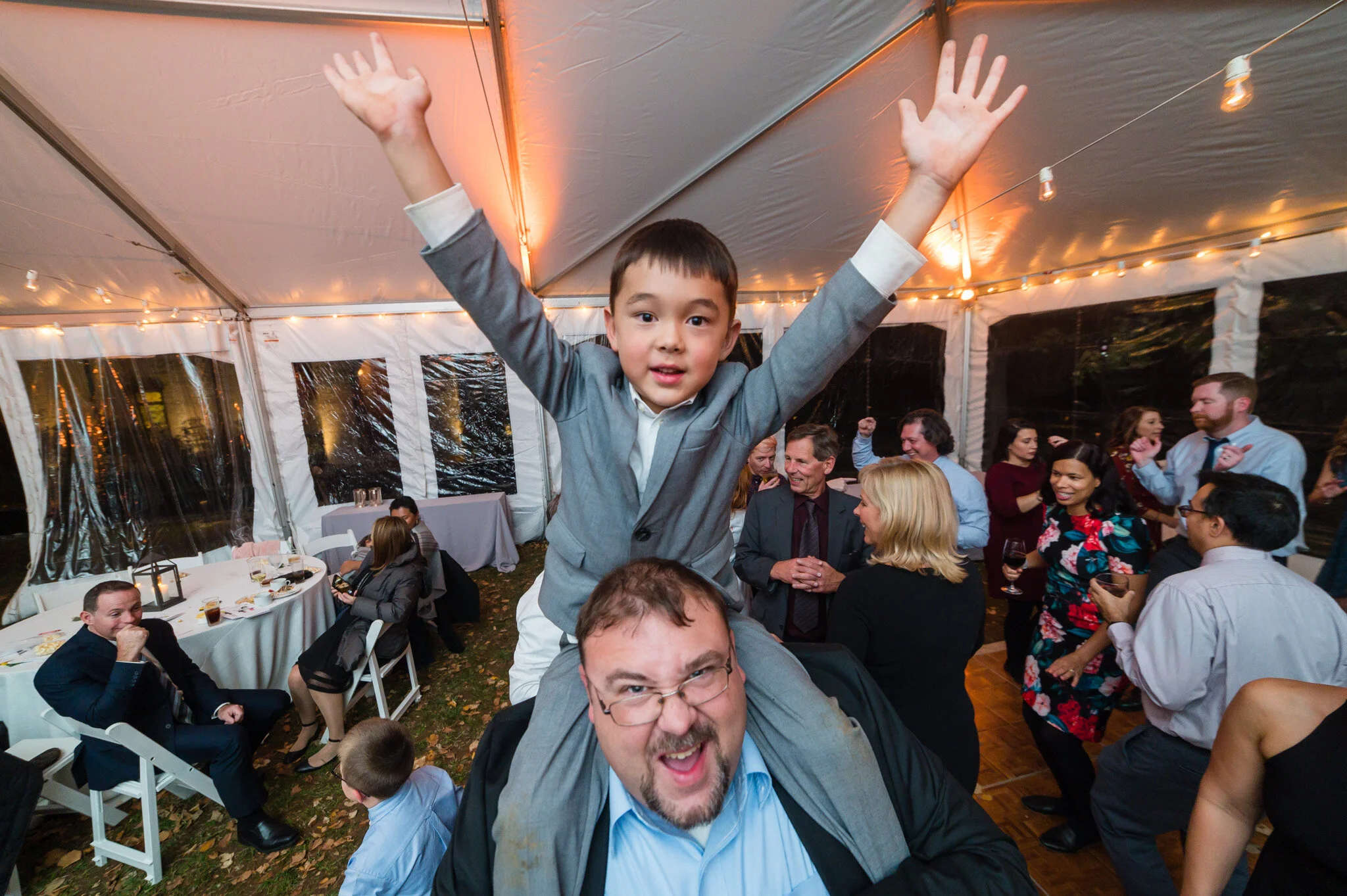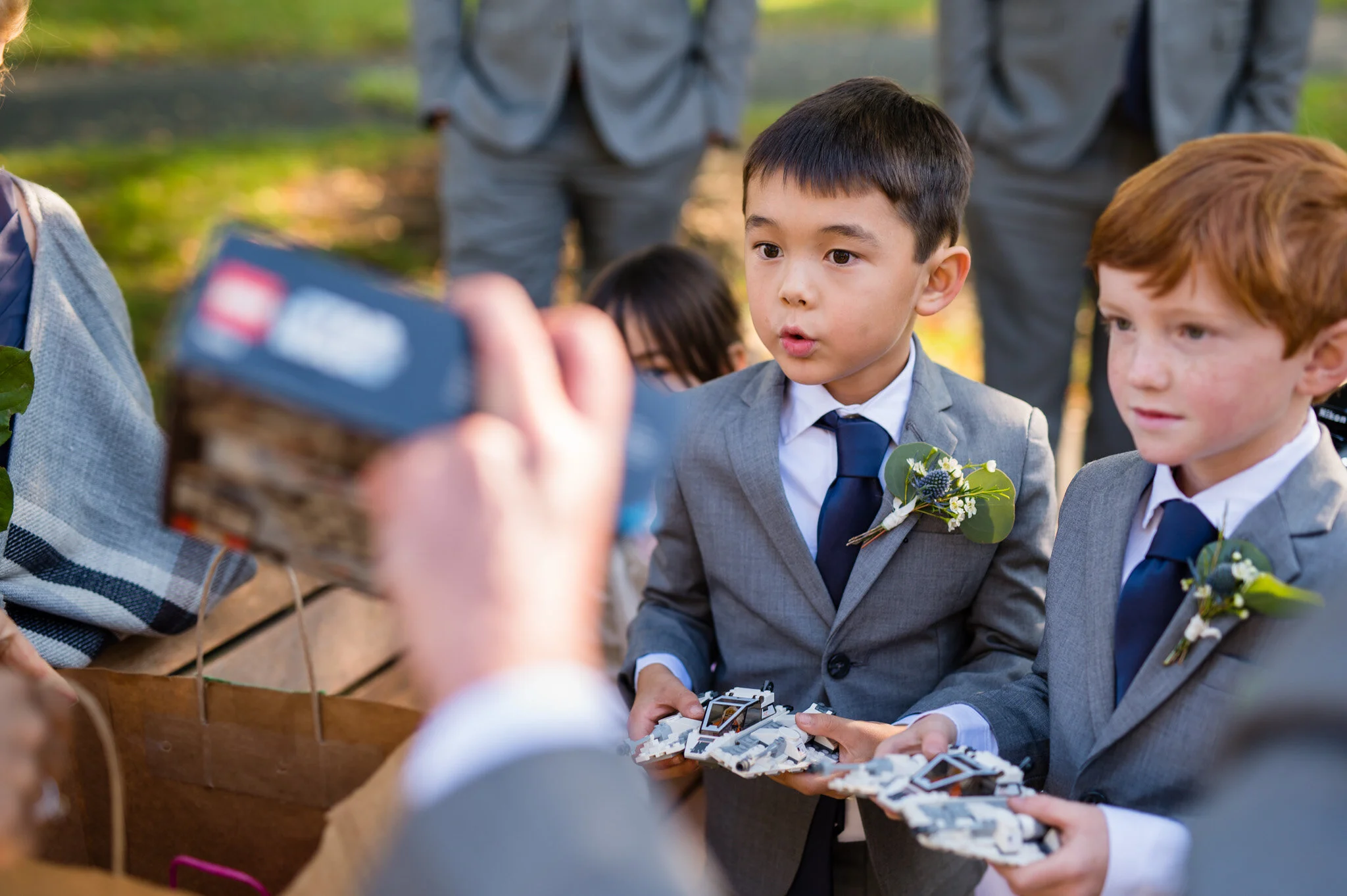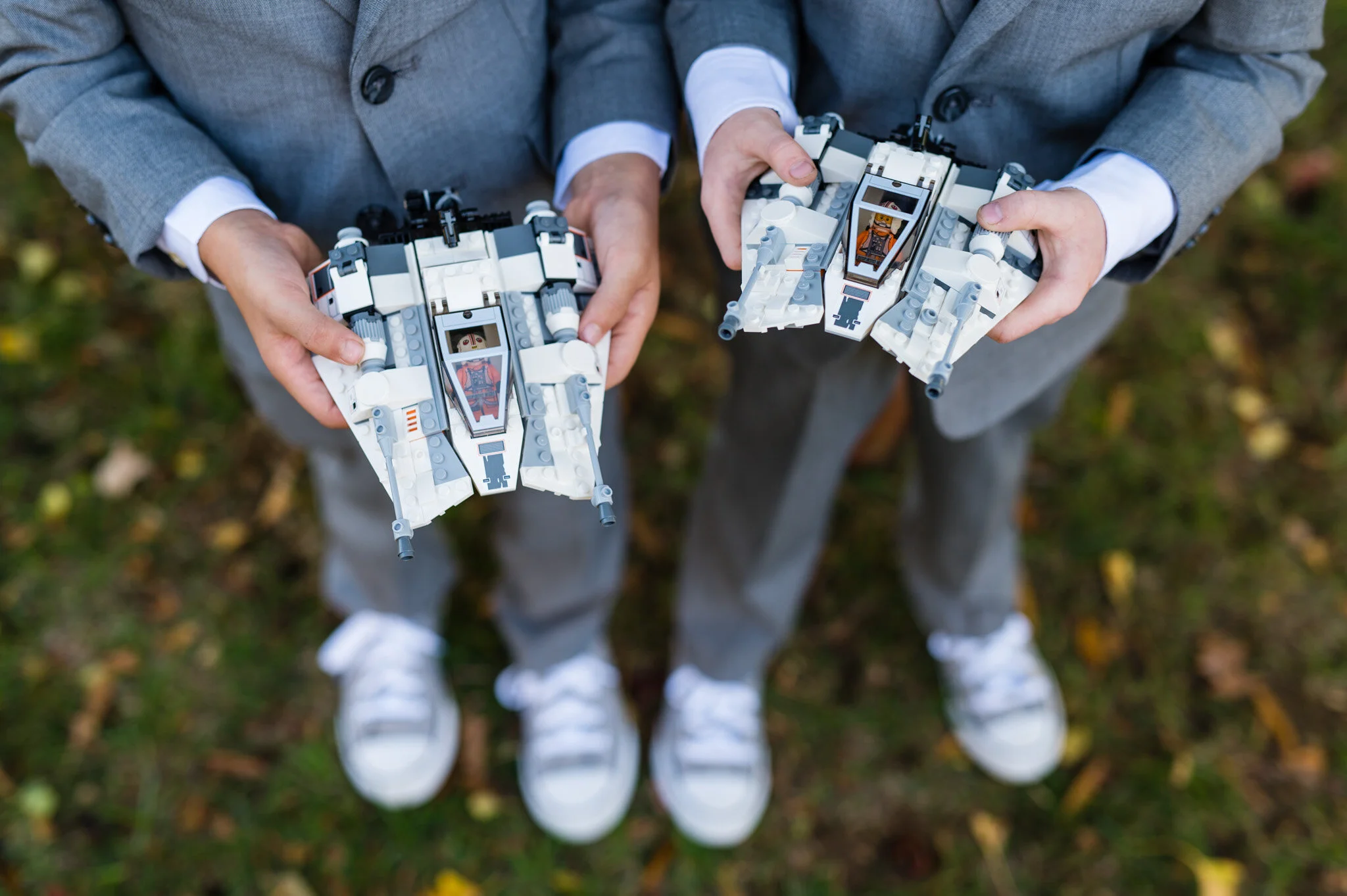 The ceremony on the lawn behind the cottage was the perfect spot in the middle of fall. Cider kept us warm inside while orange sunset light radiated over our shoulders onto the site where Kyle and Joanna joined their lives together. Immediately after the ceremony we took just a few minutes to capture rich autumn portraits in that crisp golden light! Be sure to check out the shots below of the two young ring bearers, who brought the rings to the ceremony in style with Star Wars Snow Speeders!
