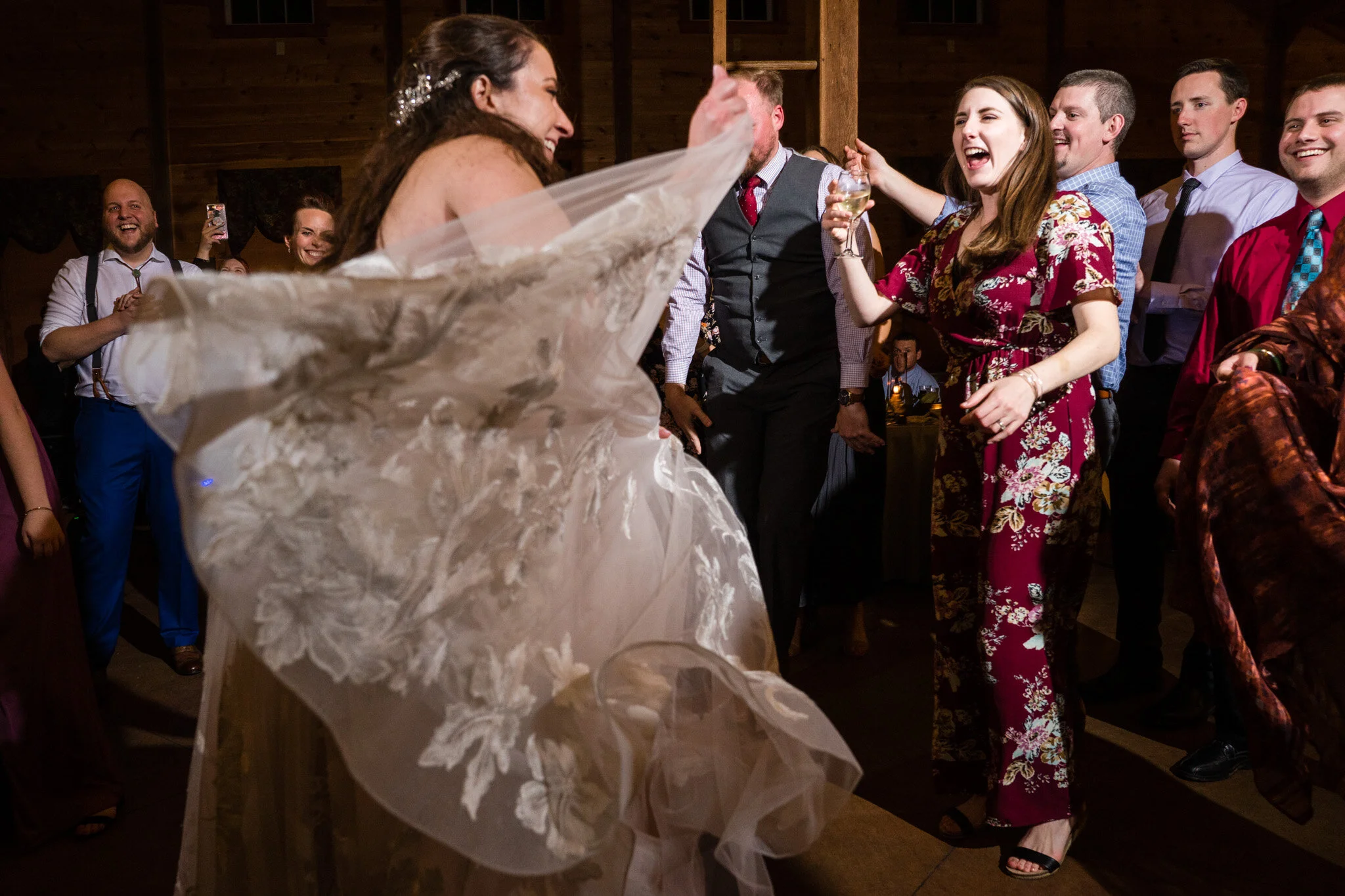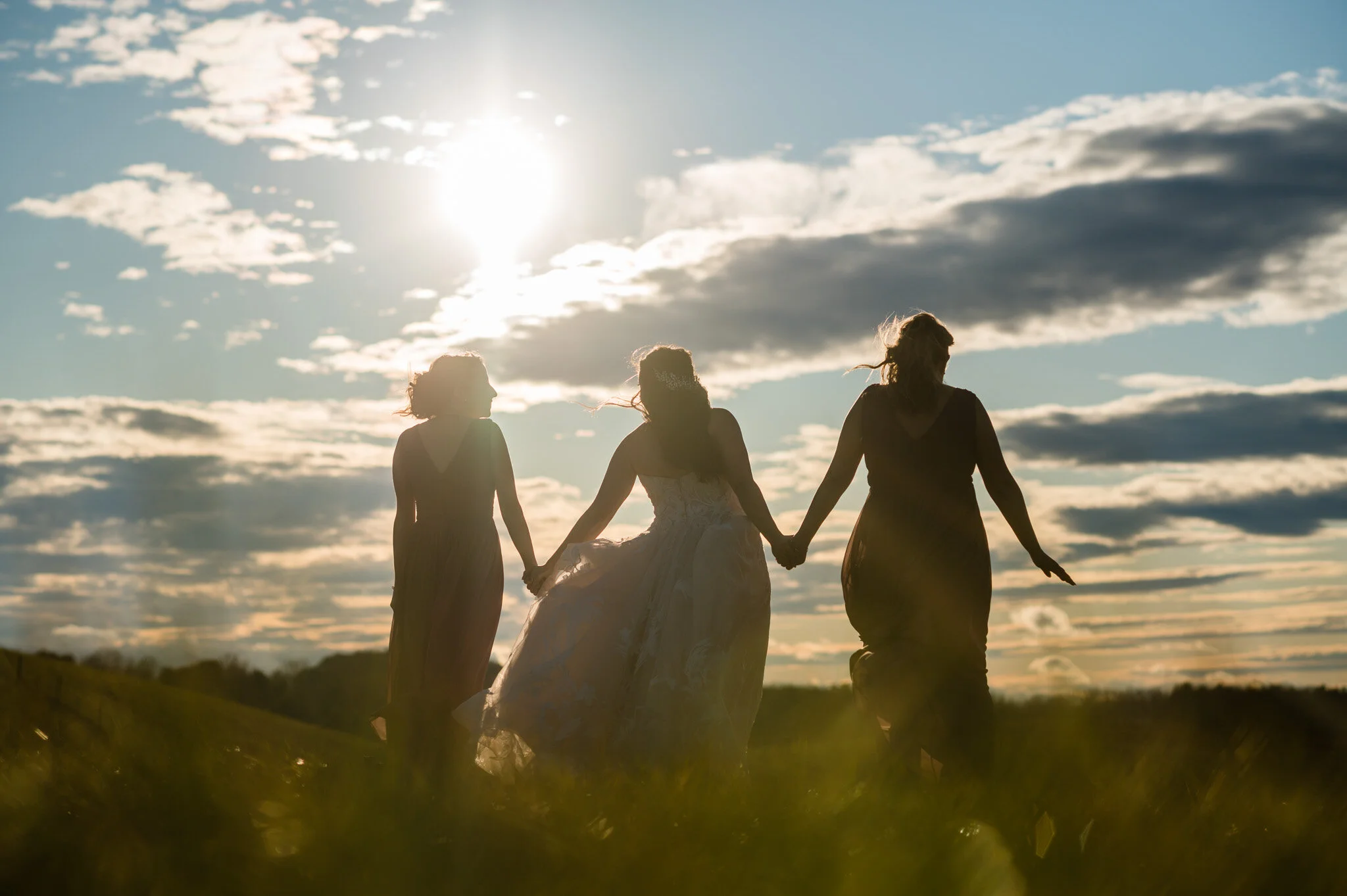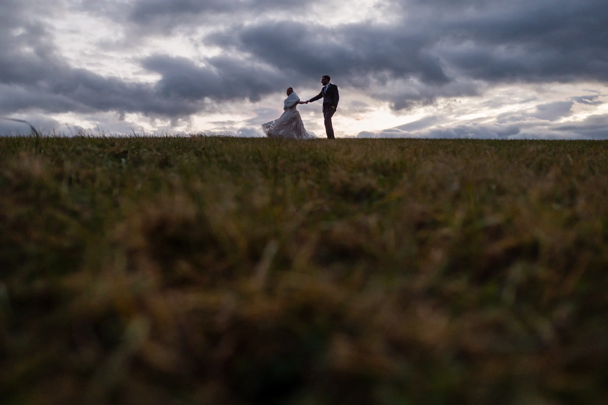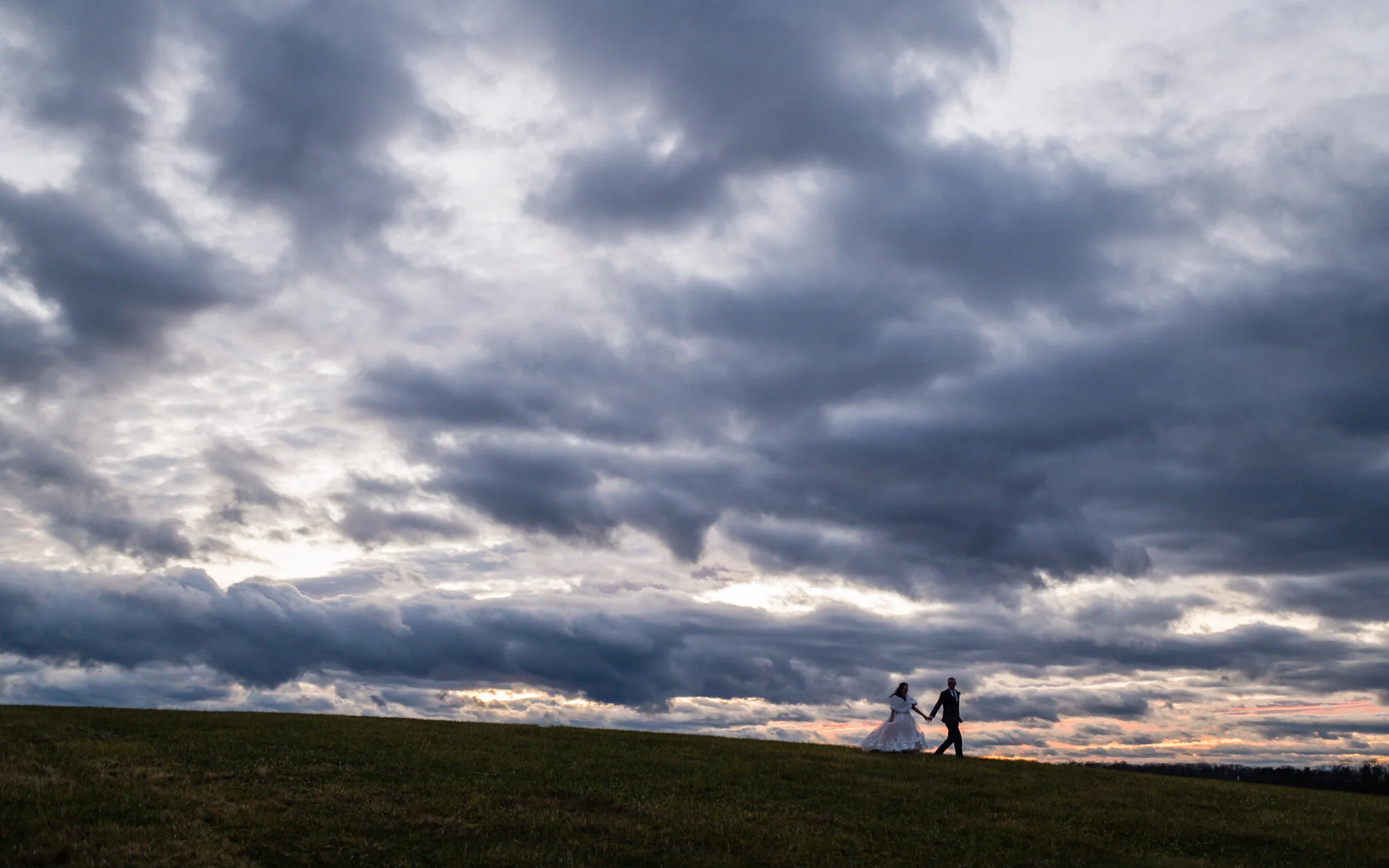 From there we took the beautiful drive to their reception at Linganore Winery! Though it was cold and windy the rain had moved off and bright sunlight mixed with moody clouds, giving us an epic backdrop to capture. Linganore is a rustic barn venue situated right in an area that gave us a full 360 view of the sunset and surrounding area. Charlie and Holly braved the high winds and came back with some of my favorite images of the year!