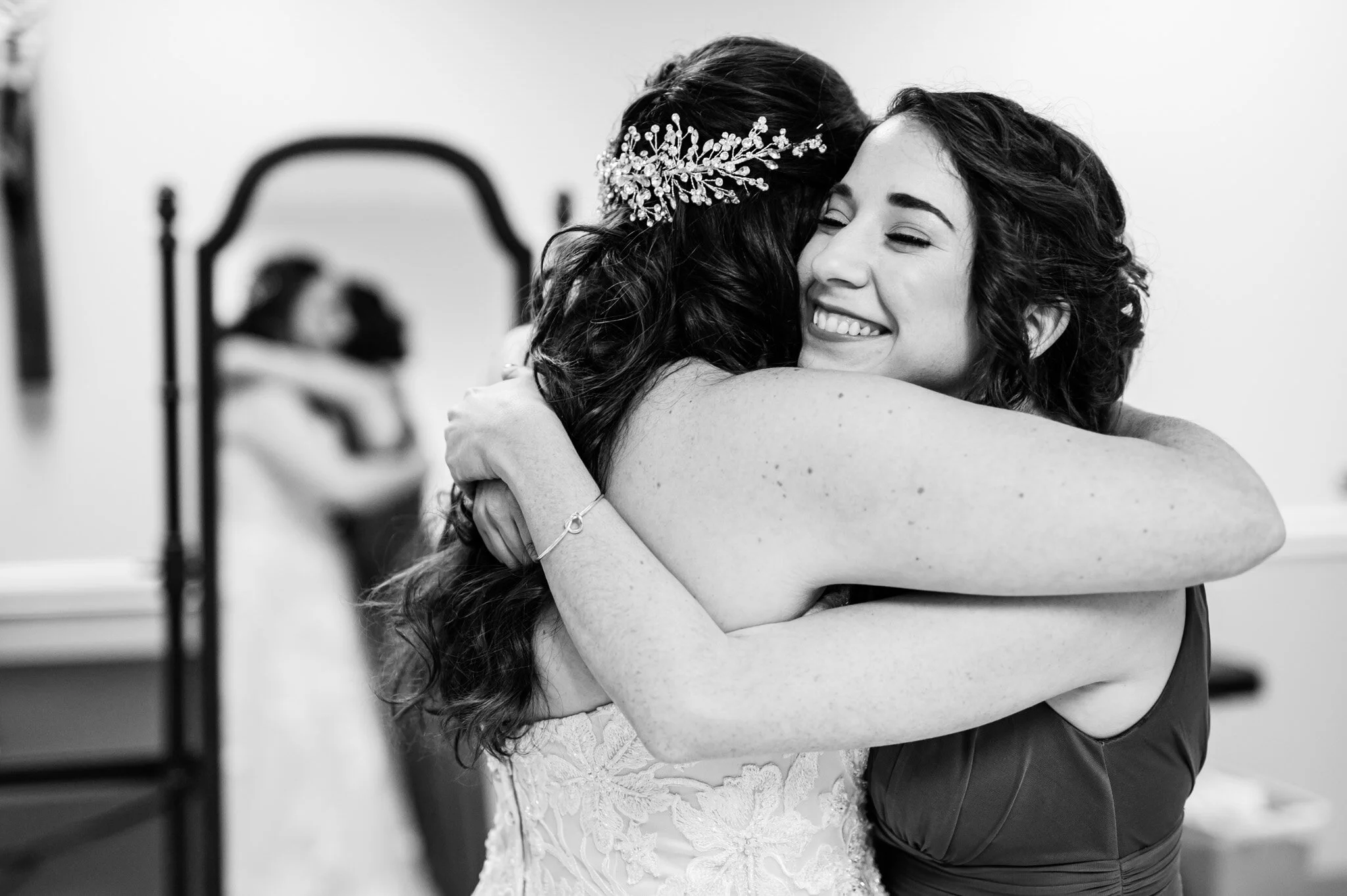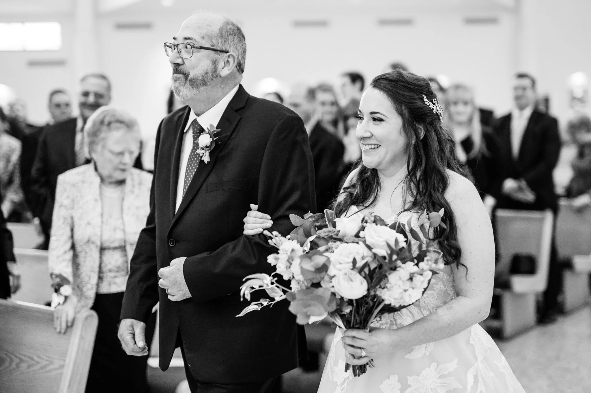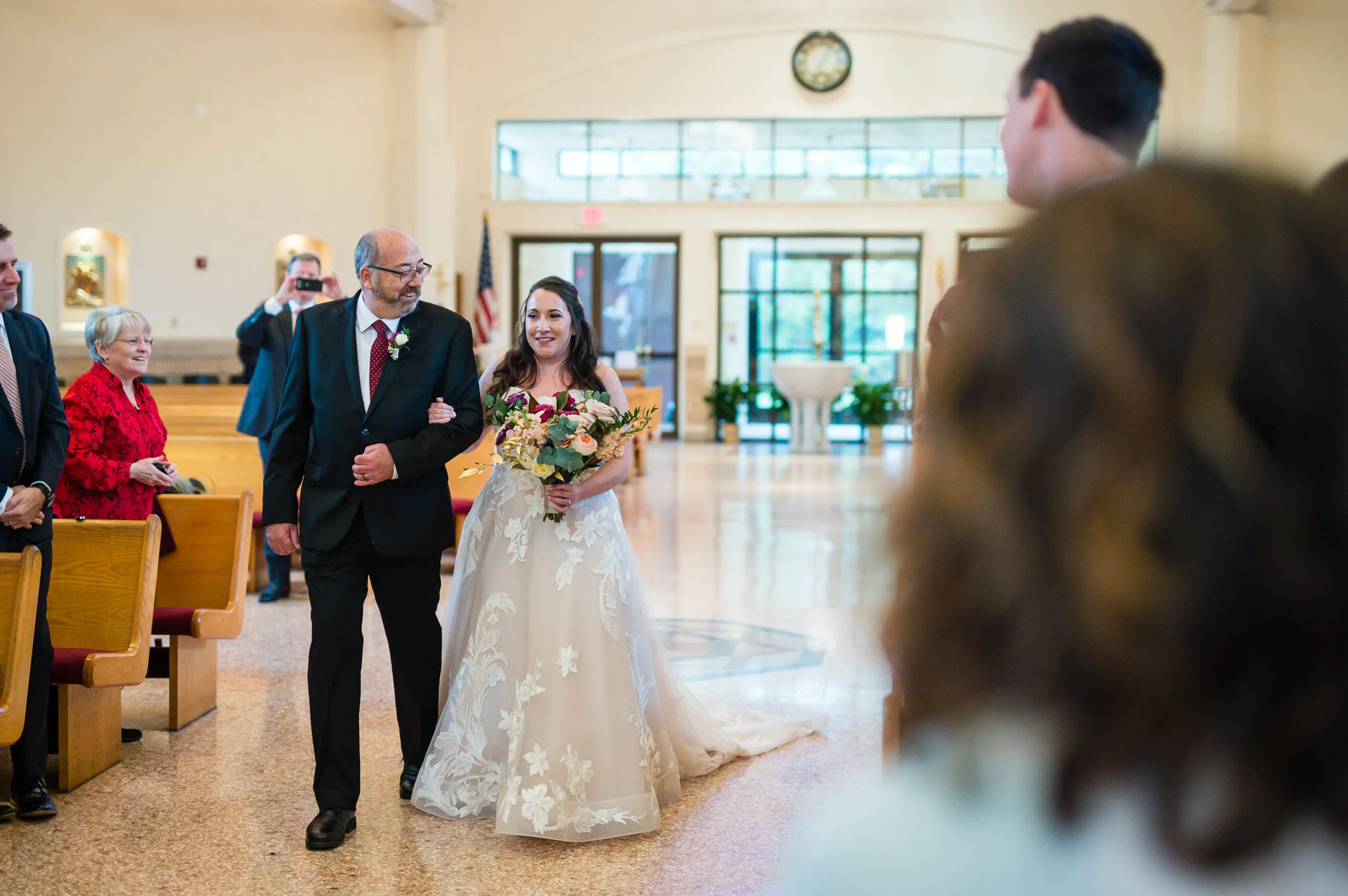 The day started out wet and rainy at a very special place for the family, Holly’s grandmother’s church, Mother Seton Parish in Germantown, Maryland. Holly enjoyed getting ready with the help of her mother, sister, and one of her best friends, followed by an emotional first look with her Dad. All the while Charlie was welcoming guests upstairs and preparing to marry the love of his life!