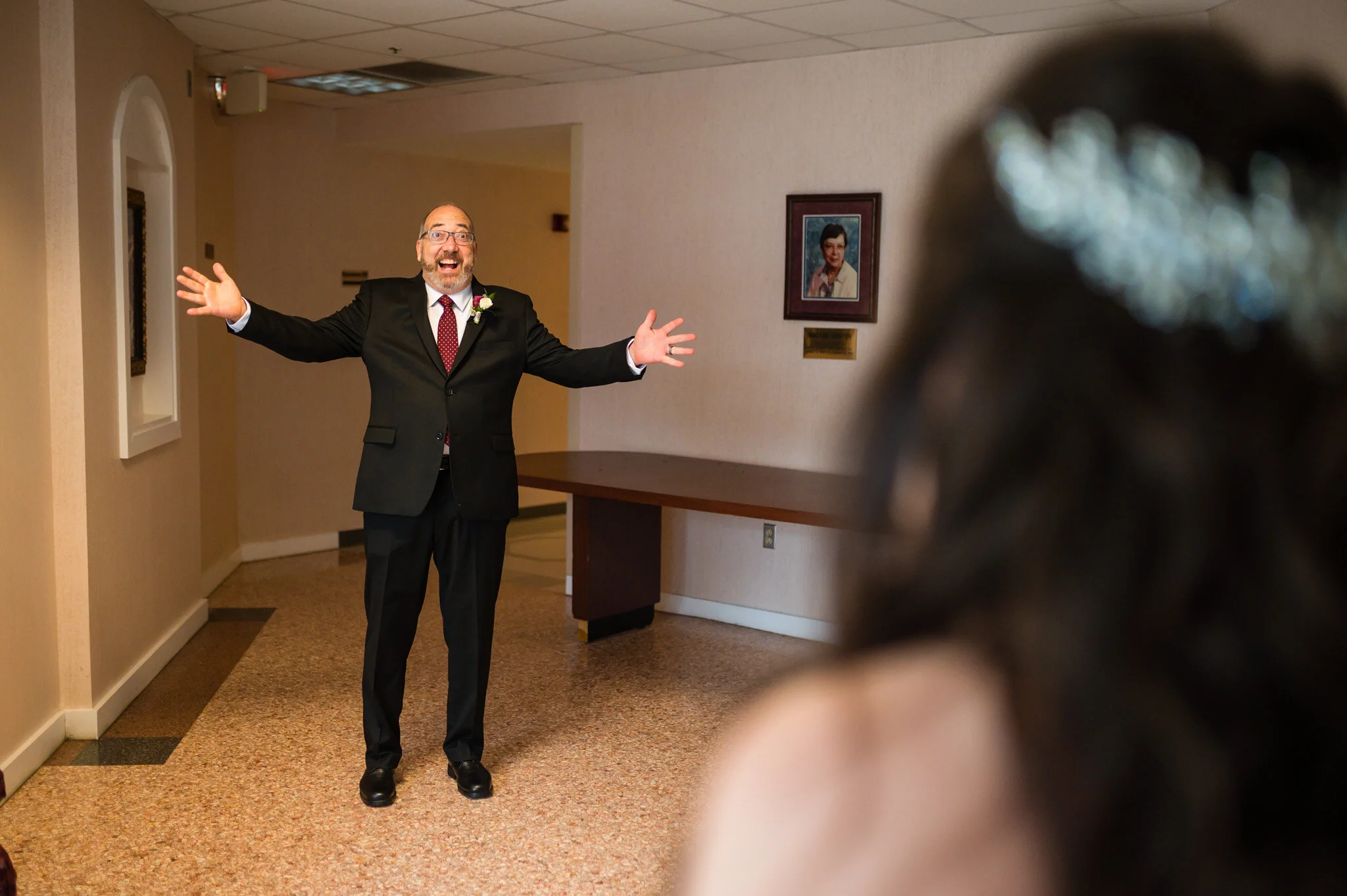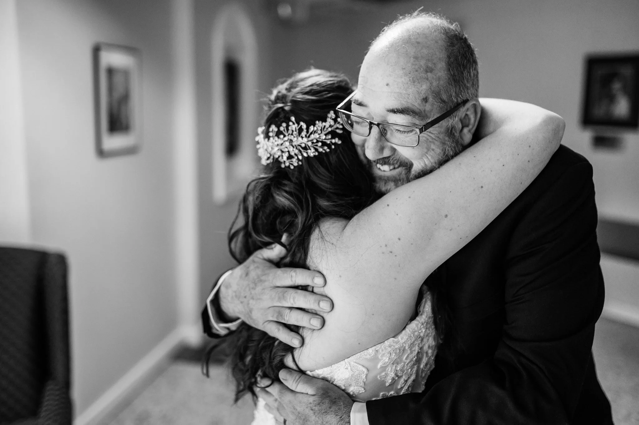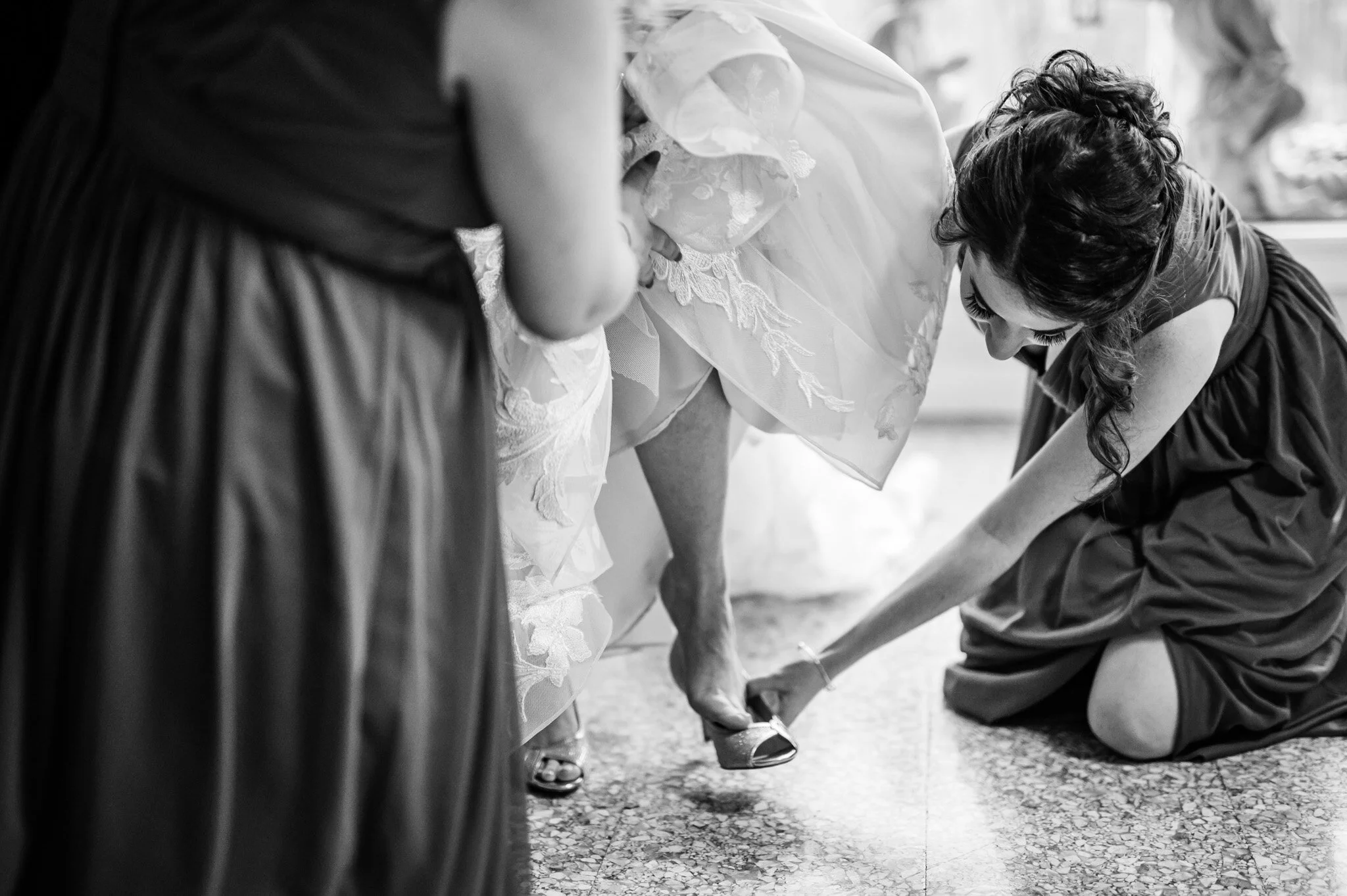 The day started out wet and rainy at a very special place for the family, Holly’s grandmother’s church, Mother Seton Parish in Germantown, Maryland. Holly enjoyed getting ready with the help of her mother, sister, and one of her best friends, followed by an emotional first look with her Dad. All the while Charlie was welcoming guests upstairs and preparing to marry the love of his life!