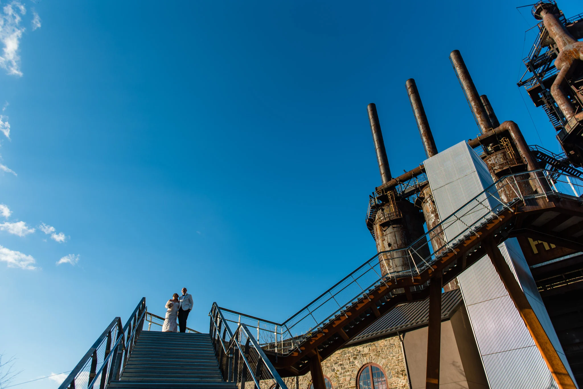 I love that I have the opportunity to photograph wedding stories in unique locations. Over the years I’ve been at beautiful wineries, huge cathedrals, and even a 1700’s mill, but Evan and Megan’s wedding took the cake by being at the Bethlehem Pennsylvania SteelStacks.