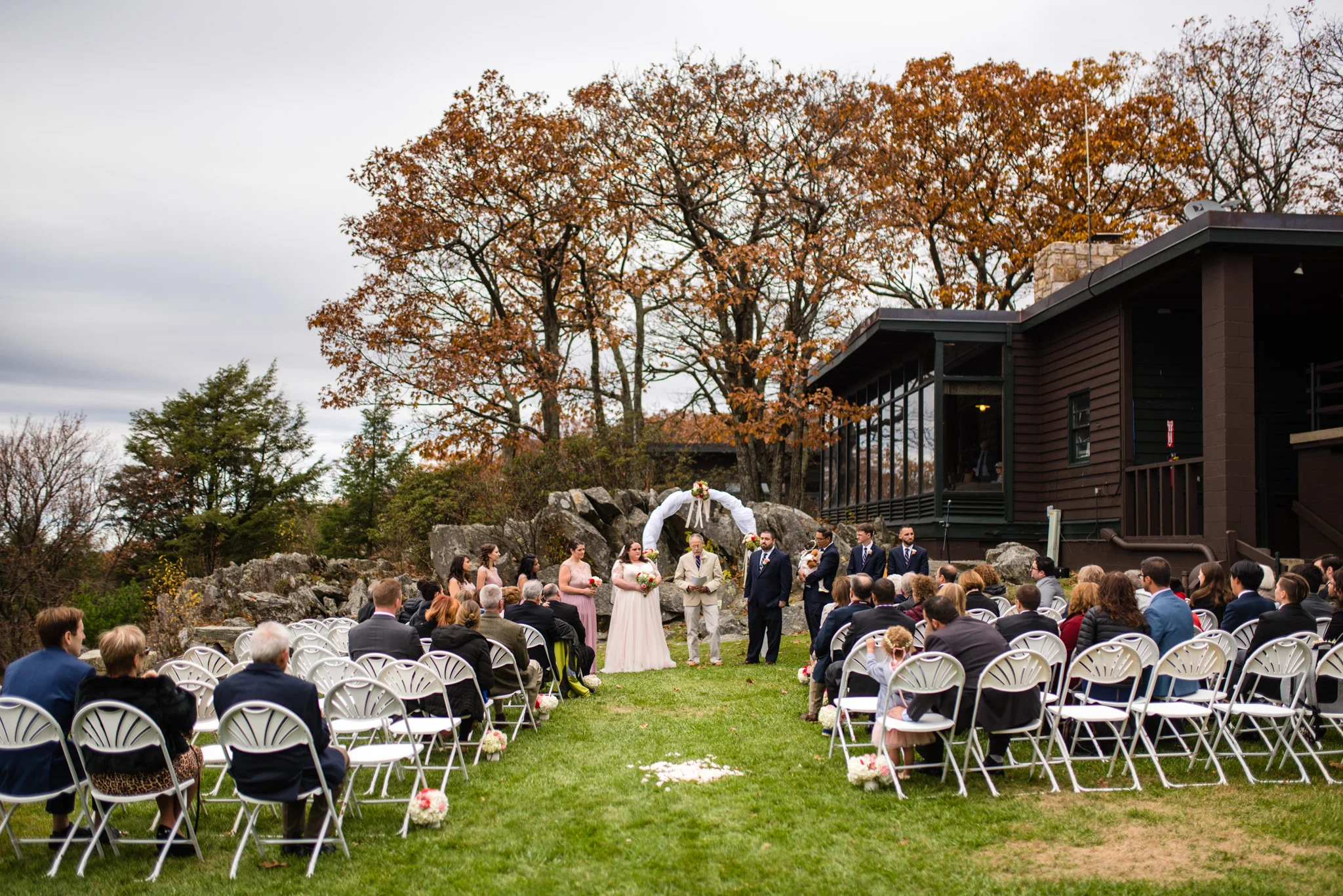 The ceremony went off without a hitch but not two minutes after the first kiss rain began to move in, forcing us quickly indoors for family photos. All was well and the reception continued with touching speeches and breakfast foods for lunch! I was certainly happy about this, bacon and omelets are always a good time. The rain continued for most of the afternoon, leaving us with whiteouts at the overlooks.