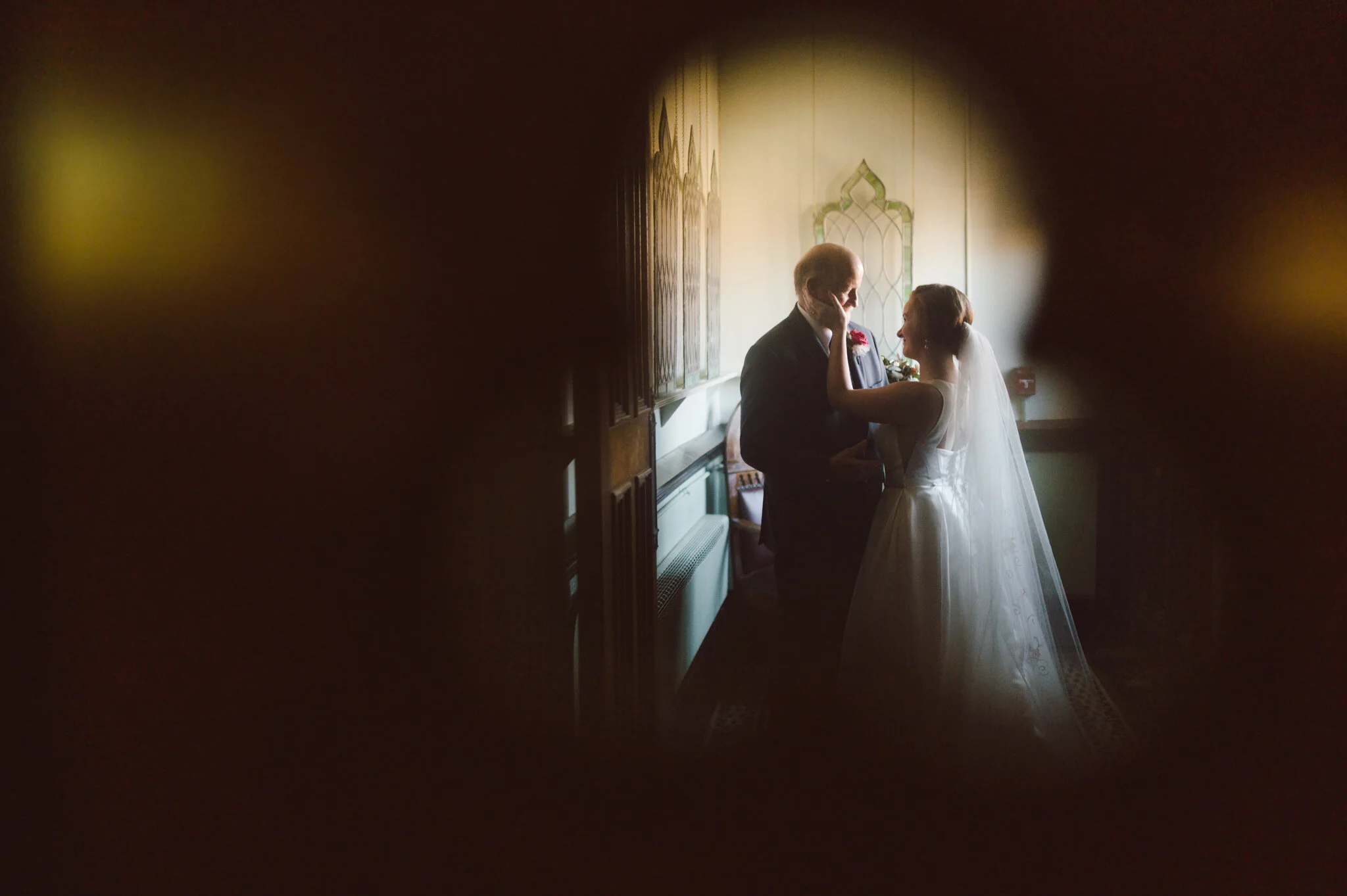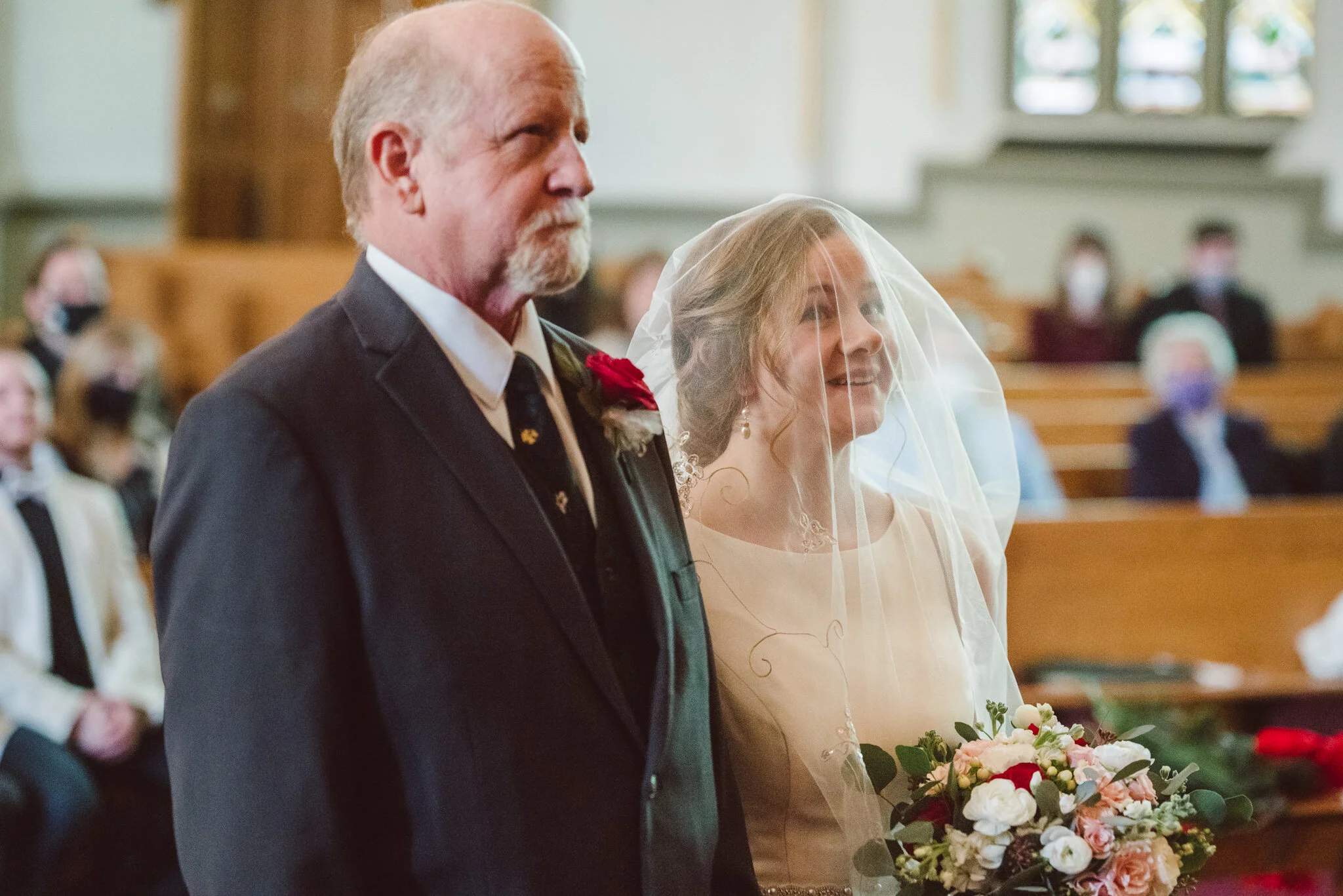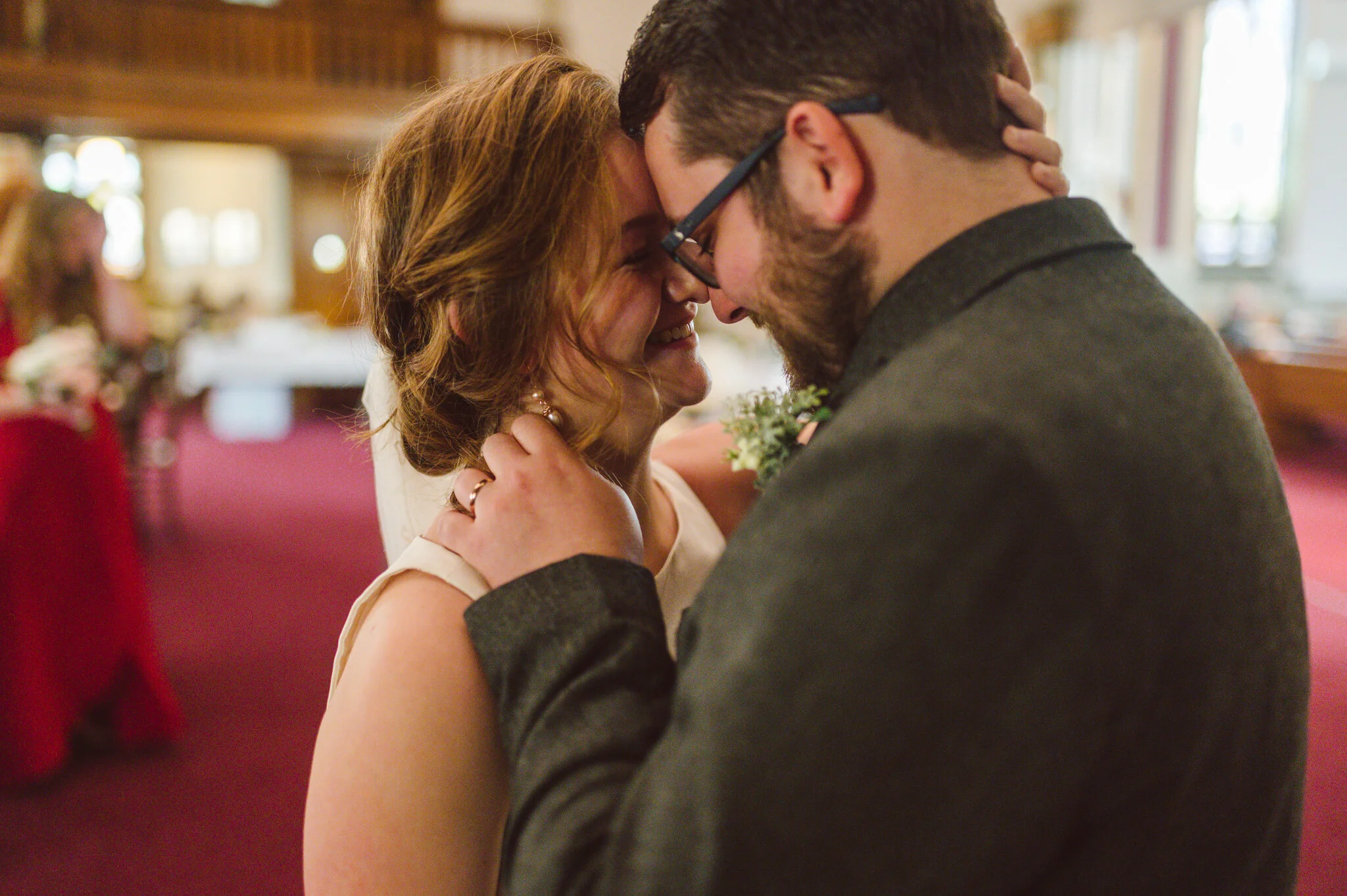 I was excited as I walked into the church that morning. This was a beautiful old church built in the mid 1800s. Soft light streamed in through stained glass windows and dark interior wood gave us plenty of dramatic spaces to use. Having photographed so many outdoor weddings and mountain elopements lately, it was a fun change for me creatively.