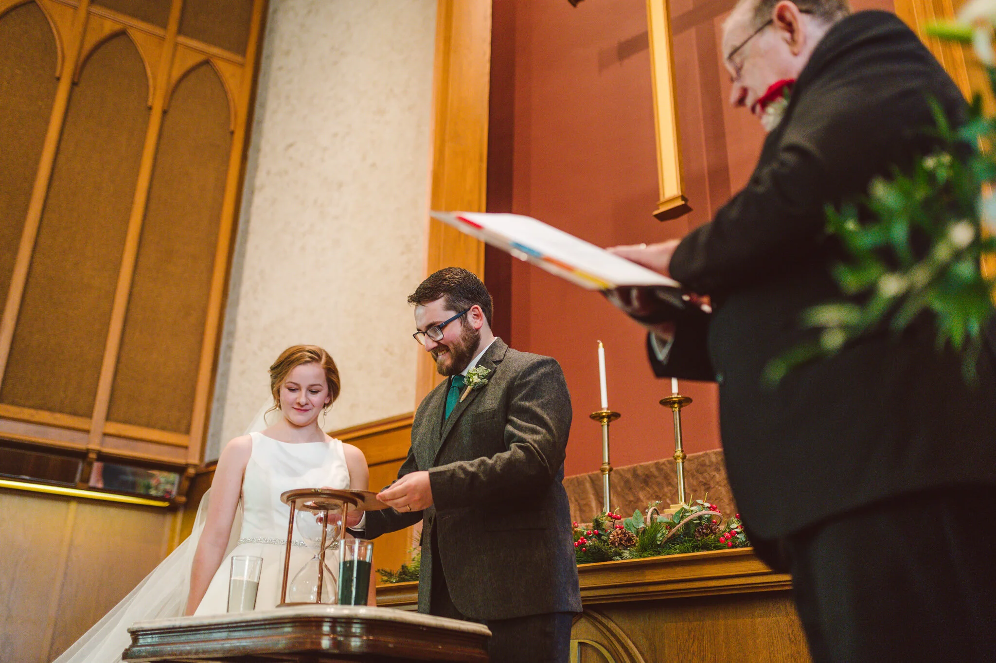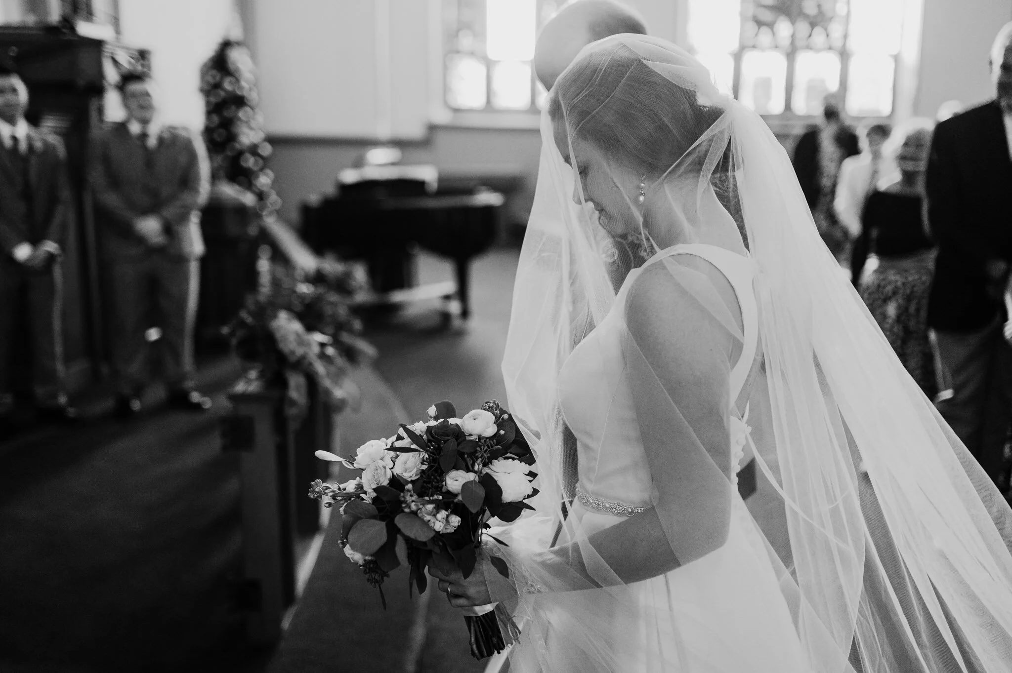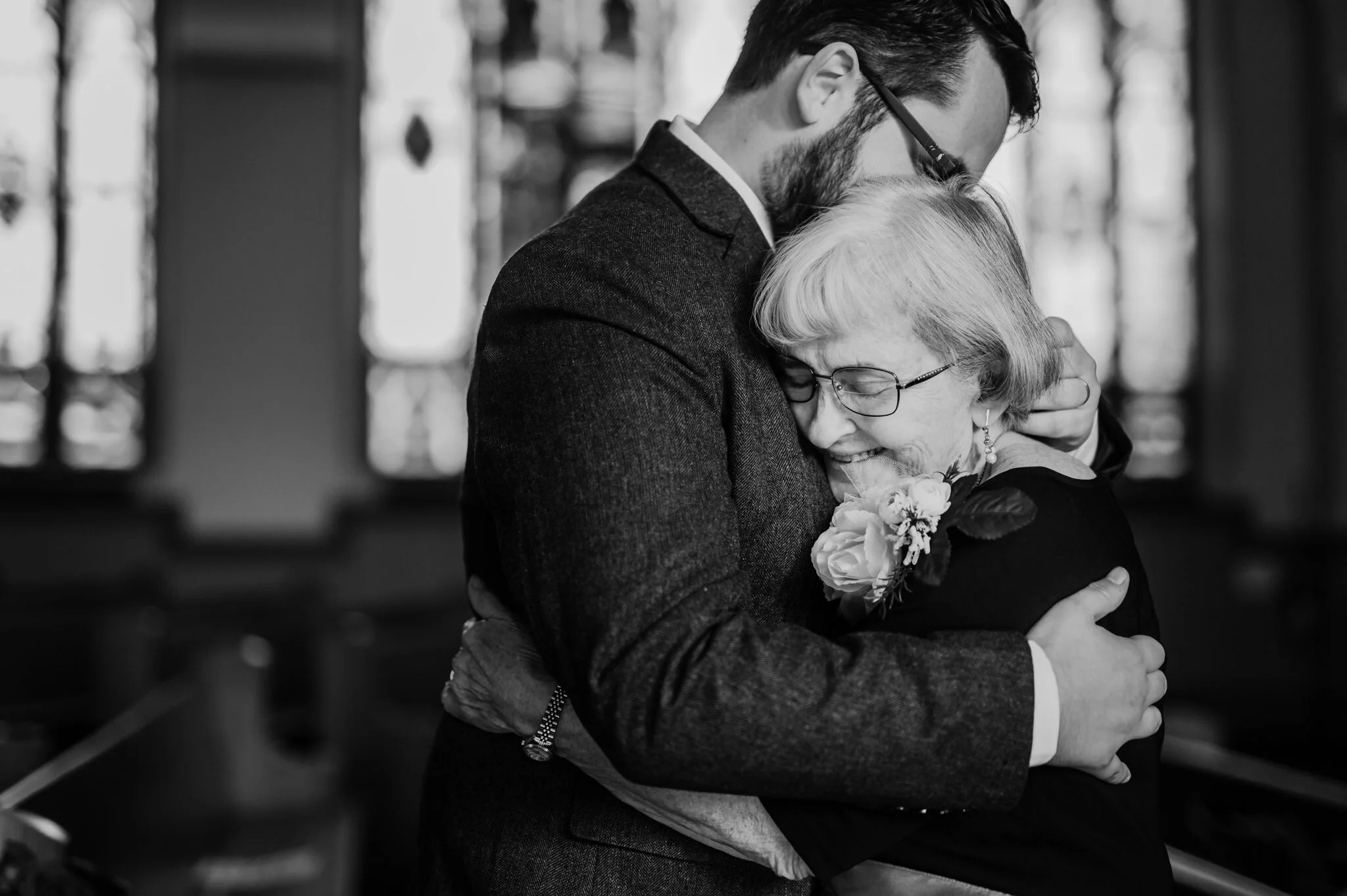 I was excited as I walked into the church that morning. This was a beautiful old church built in the mid 1800s. Soft light streamed in through stained glass windows and dark interior wood gave us plenty of dramatic spaces to use. Having photographed so many outdoor weddings and mountain elopements lately, it was a fun change for me creatively.