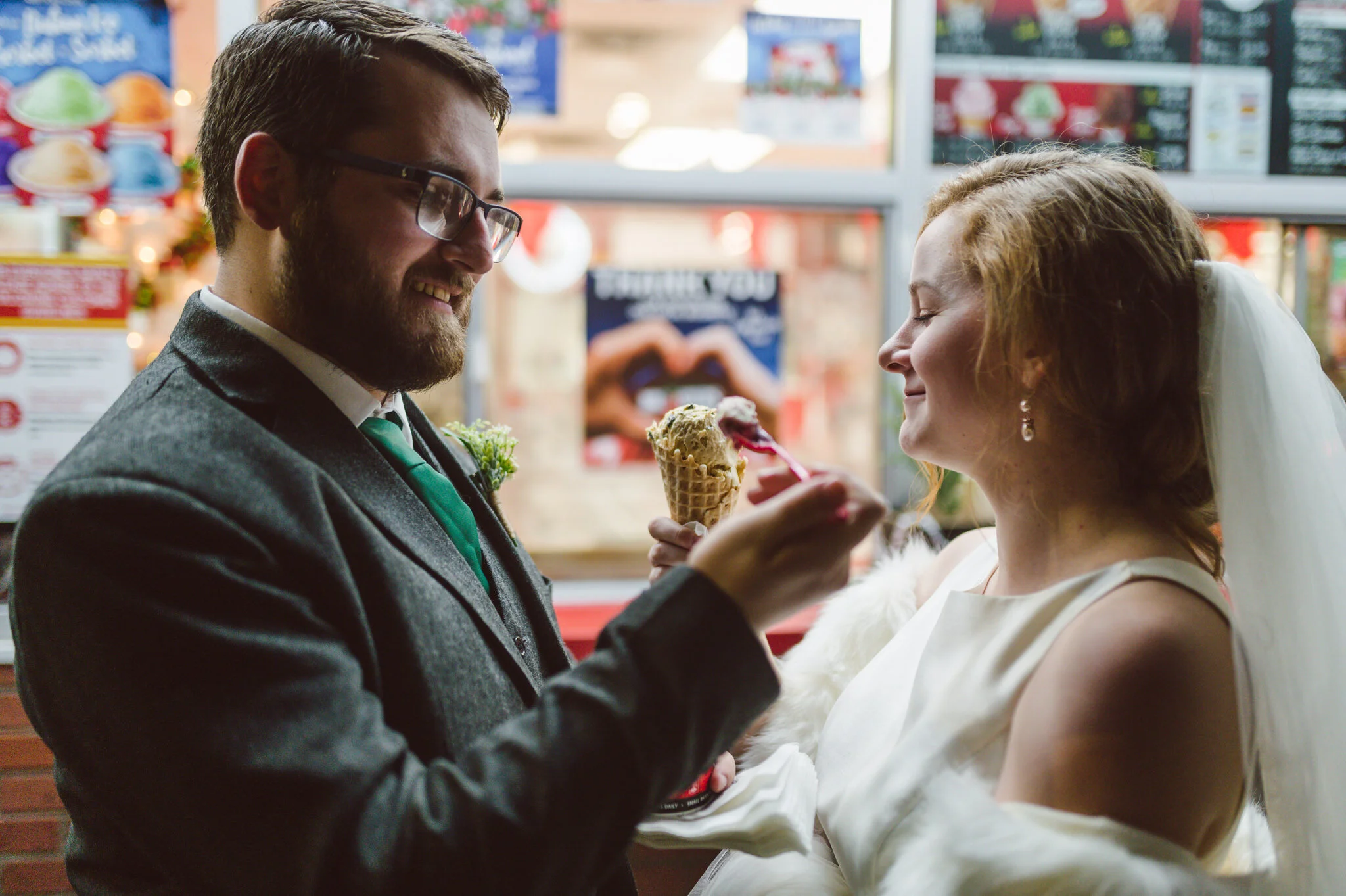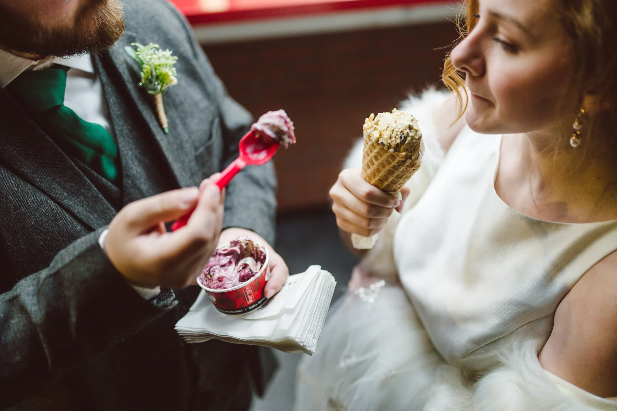 After an evening of speeches, dancing and a truckload of cookies (a western PA tradition), Ben and Elle walked out of their reception and were met with having to unwrap their car! Out of all 150+ weddings I’ve been to over the years, I have never seen a wrapped car and it made for some fun last photos on their day. But that wasn’t quite it, Ben and Elle made sure to make the most of their wedding, making a stop at Bruster’s Ice Cream (a favorite local date spot) on their way to the honeymoon.