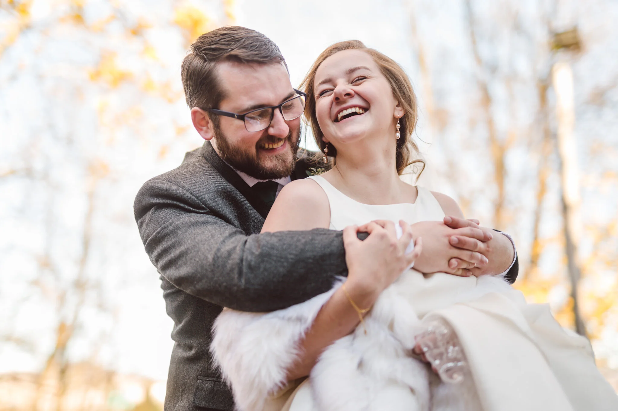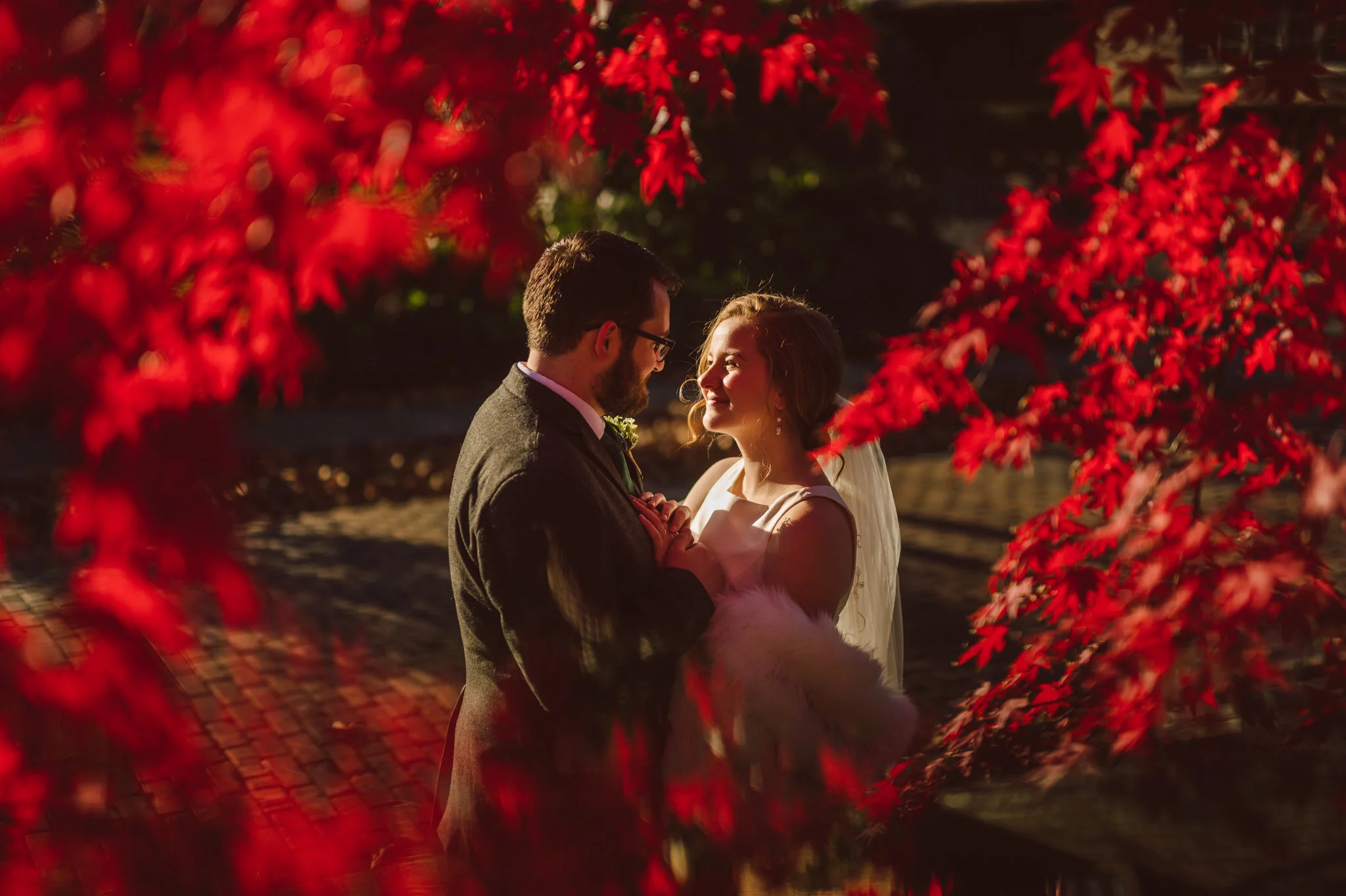 Their day was absolutely filled with emotional moments. From a first look with Elle and her Dad, to a heartfelt ceremony, to Ben simply hugging his grandmother, it was a day full of beautiful, meaningful images. We also made sure to get out and enjoy one of the last beautiful days of fall. Clear, sunny skies (a luxury in western PA) gave us light that brilliantly illuminated what was left of the fall colors. One of my favorite images is the one you first saw on this page. I loved being able to frame them perfectly between the branches of one last bright red tree.